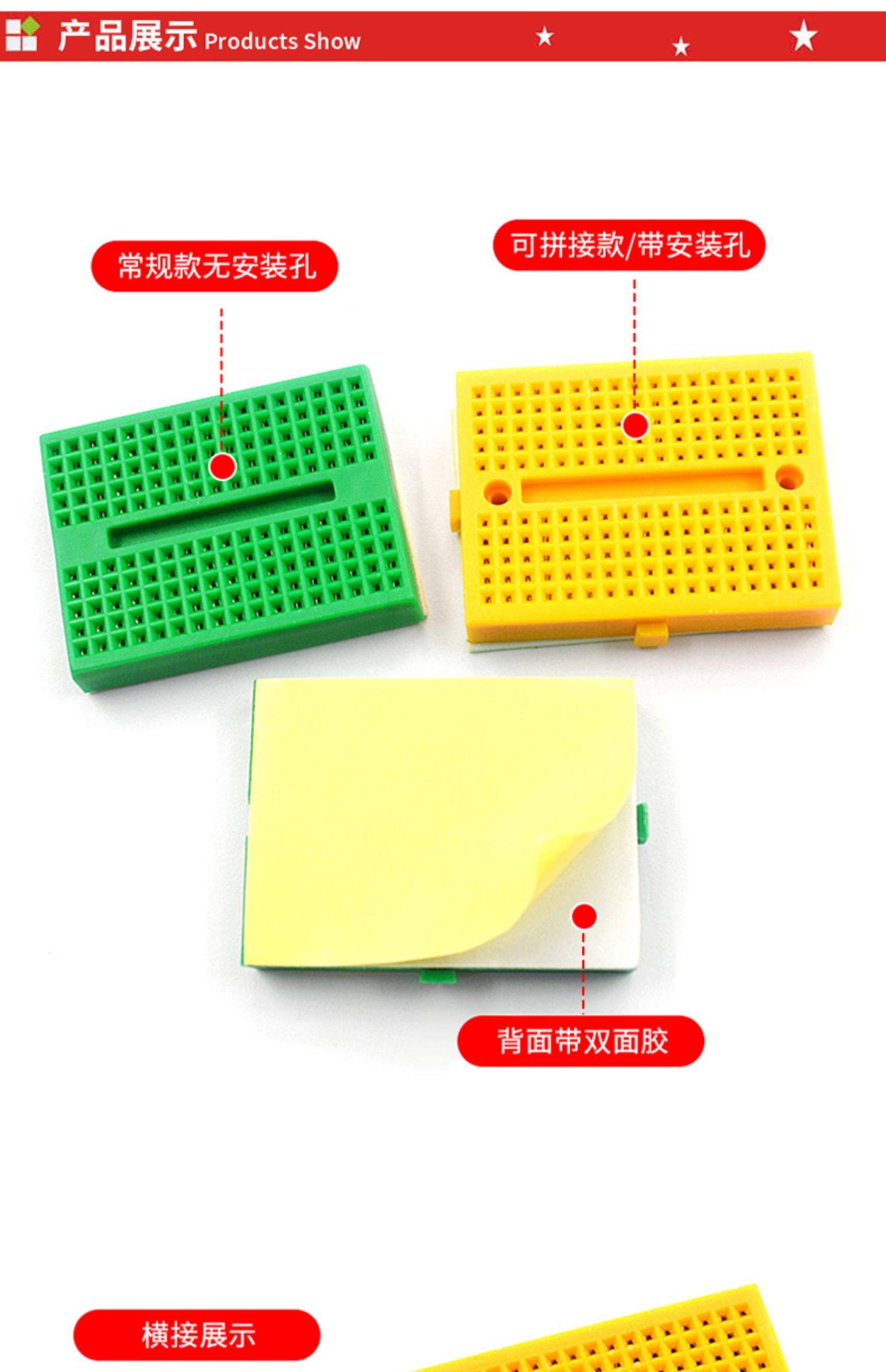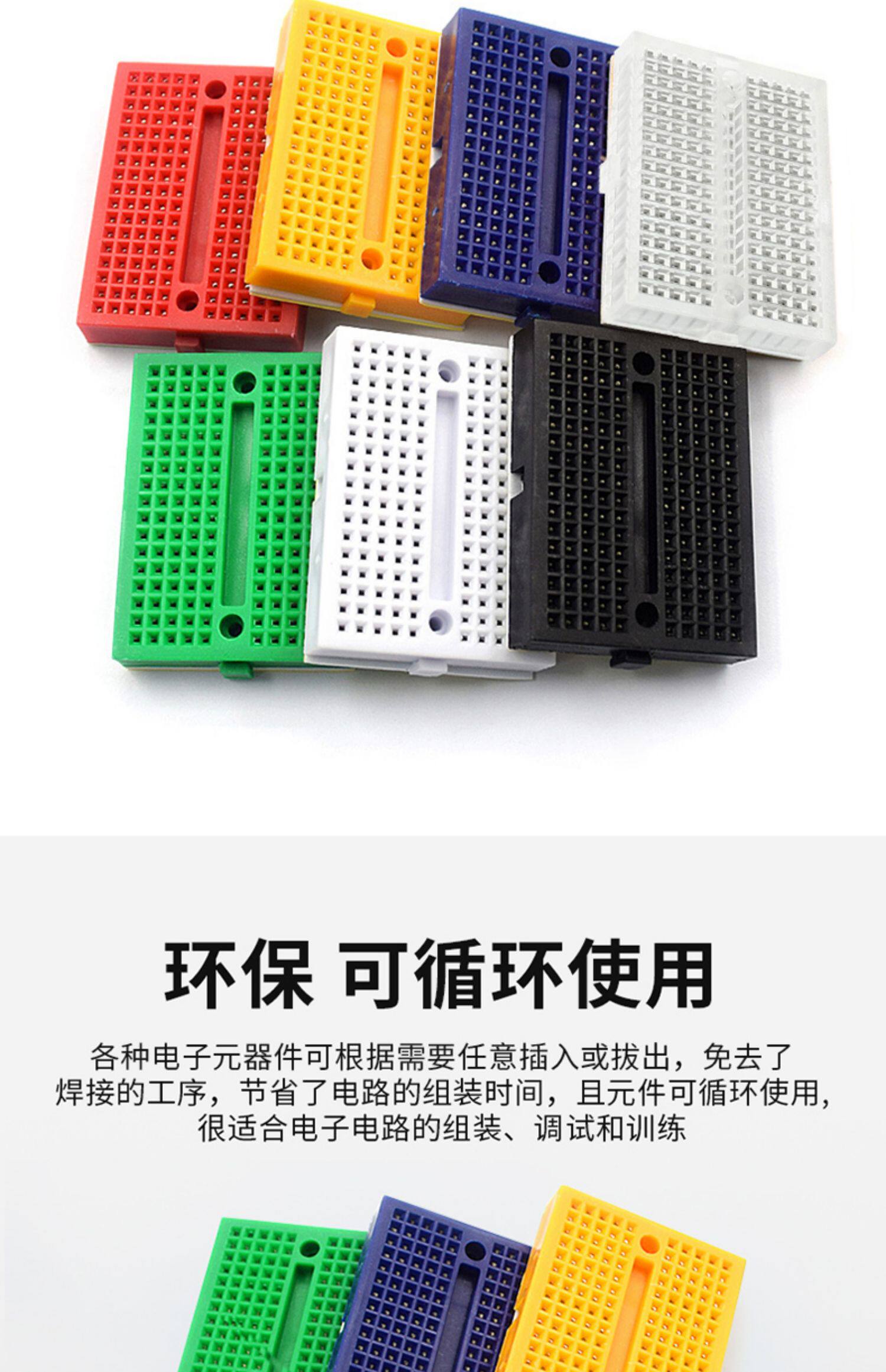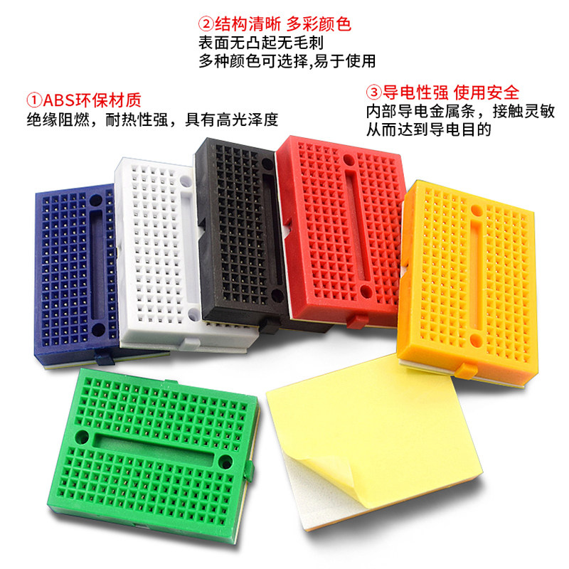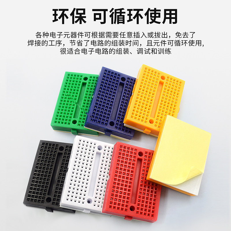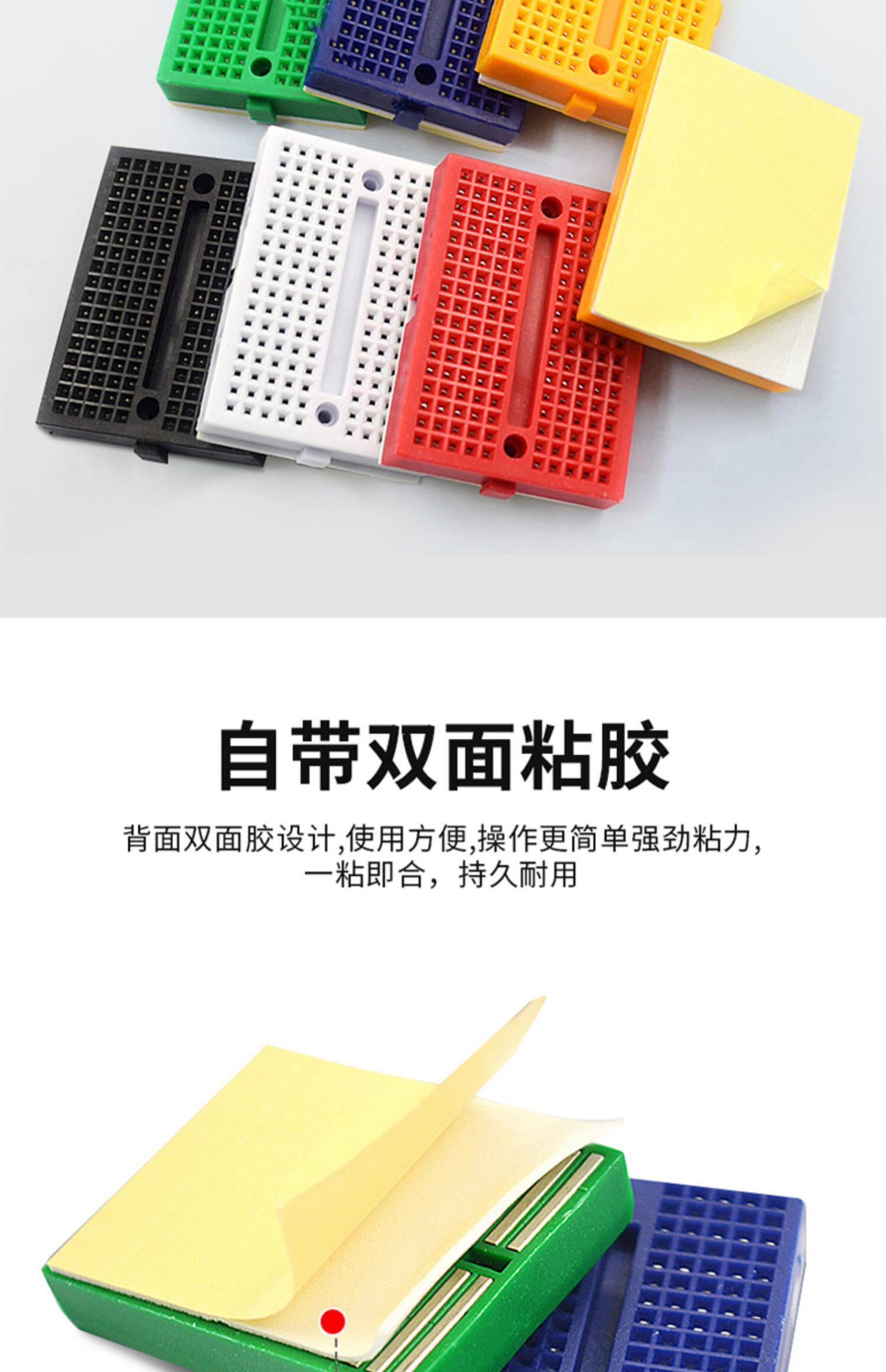 SYB-170彩色面包板35X47mm迷你170孔可拼接洞洞板DIY实验拓展配件