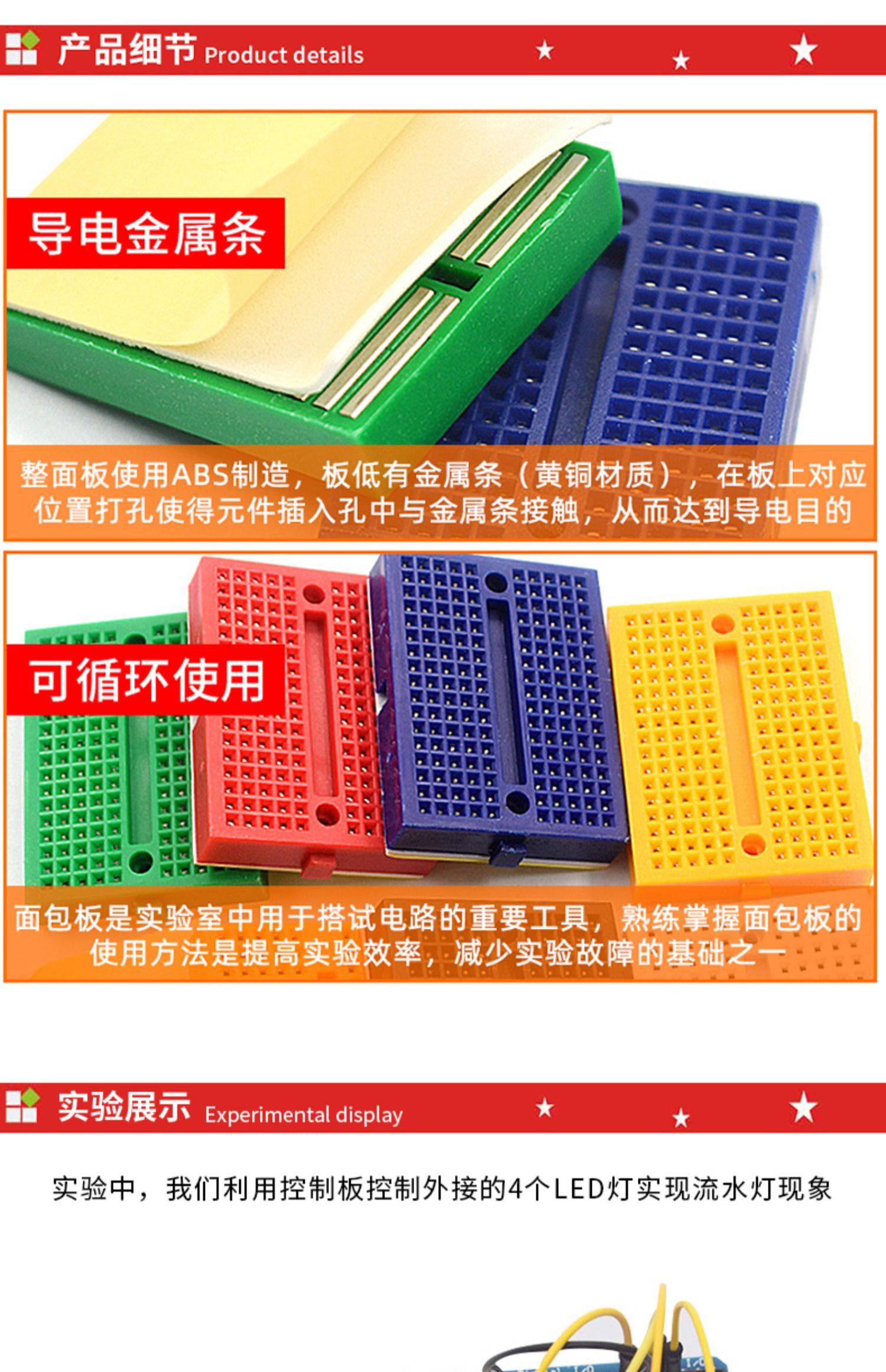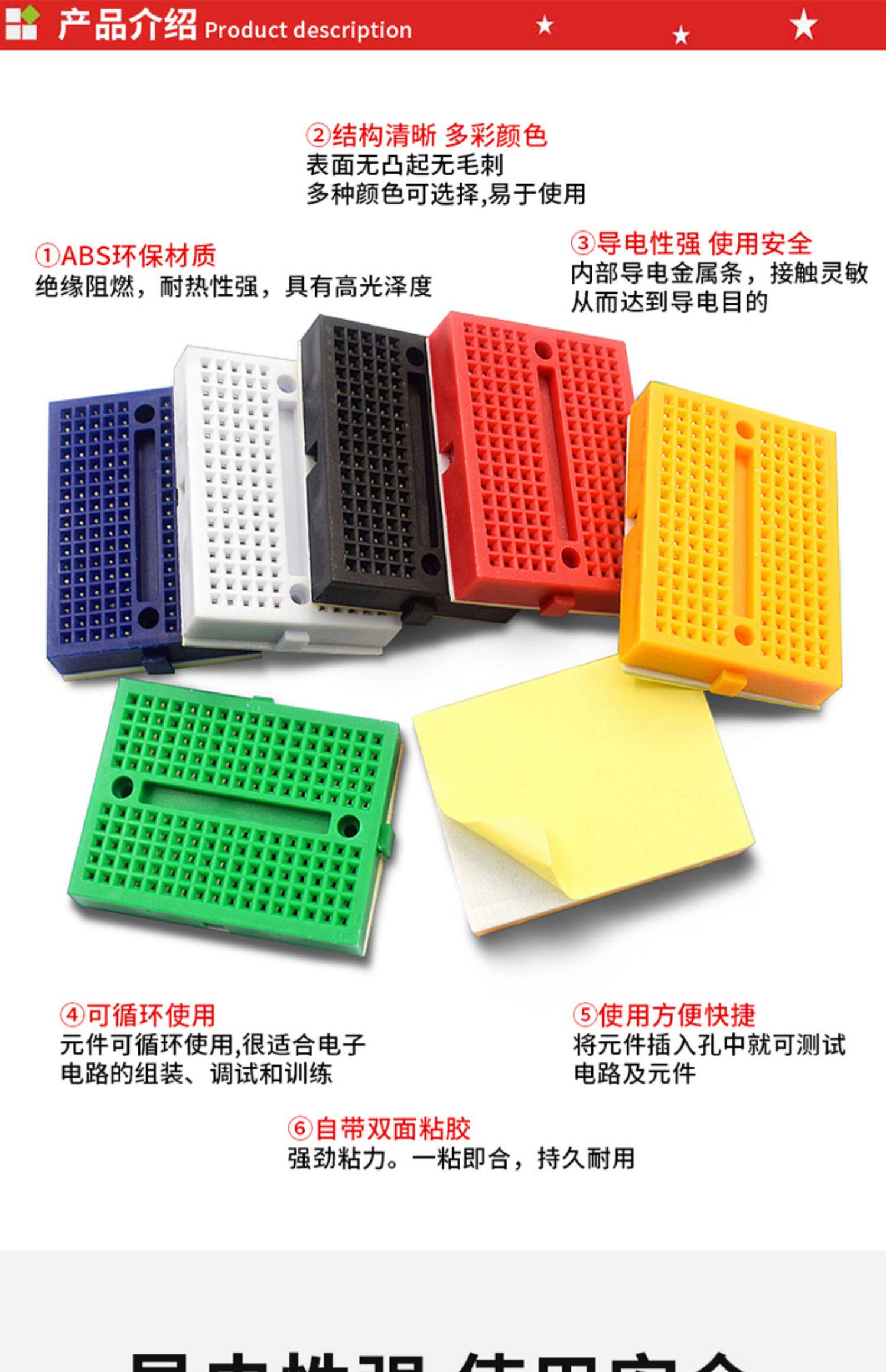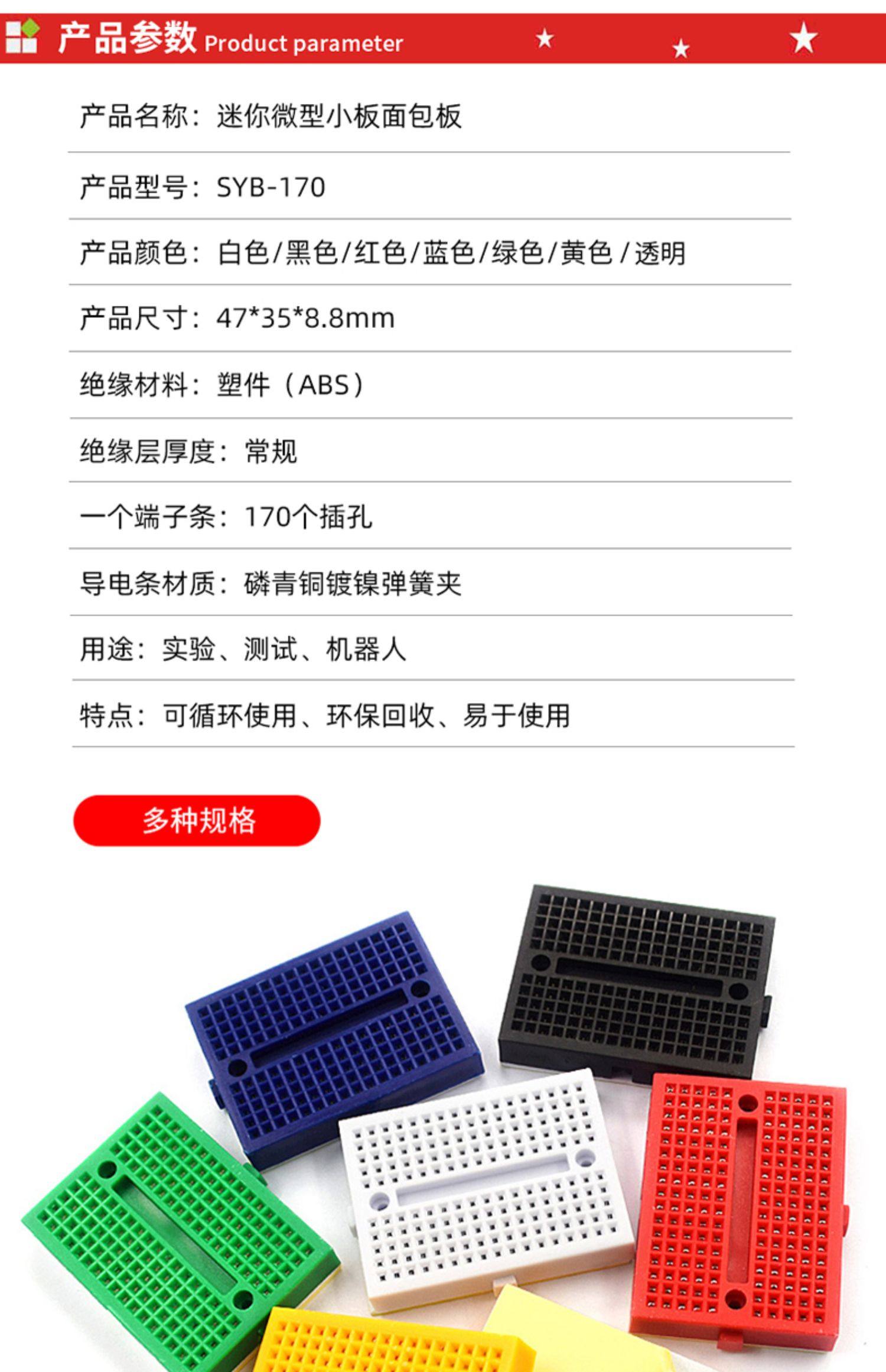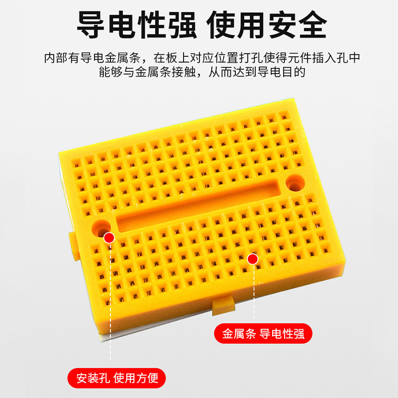 SYB-170彩色面包板35X47mm迷你170孔可拼接洞洞板DIY实验拓展配件