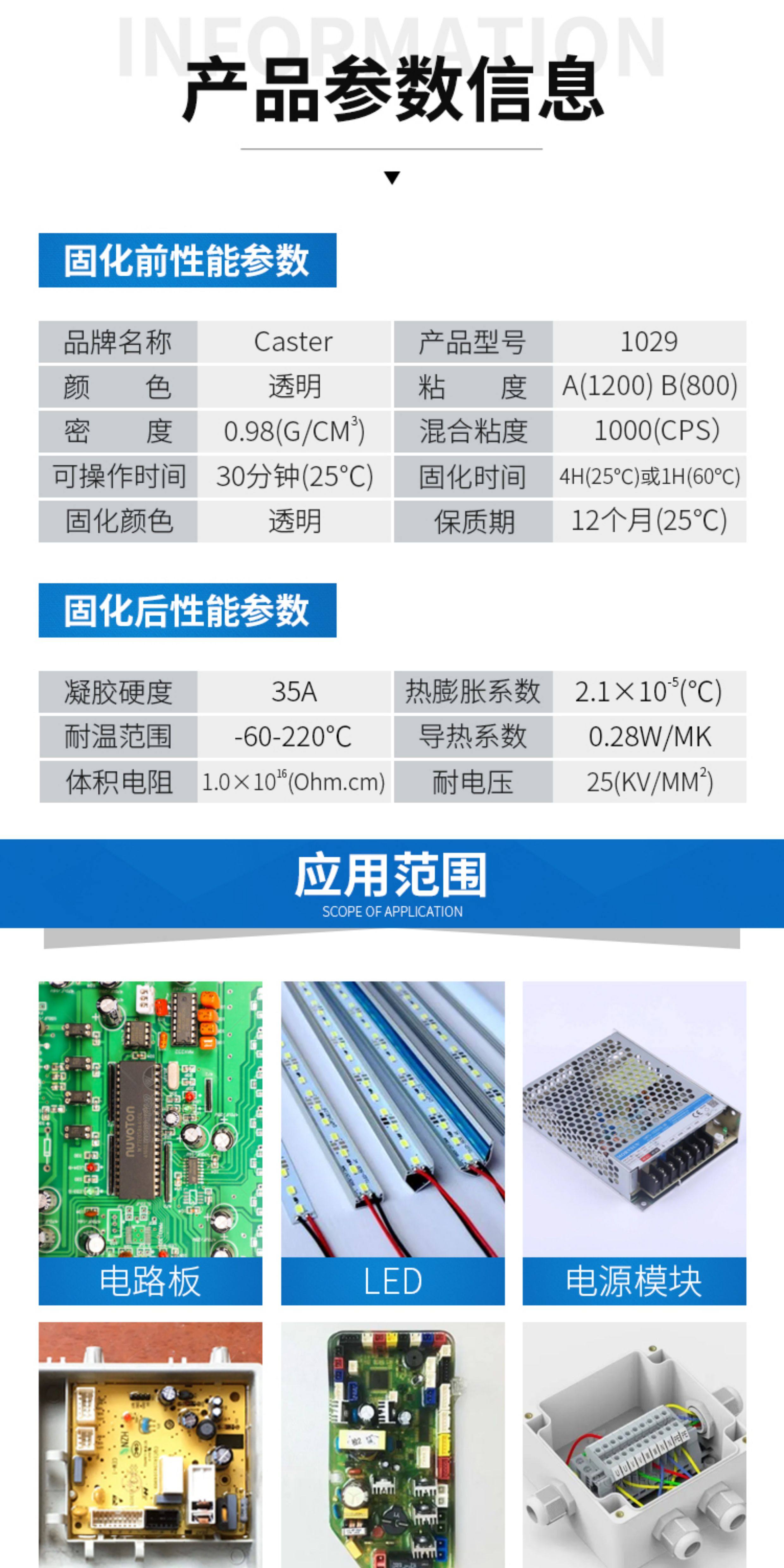 1029透明高弹性LED灌封胶水 有机硅胶科研封装材料 电子仪表用软胶