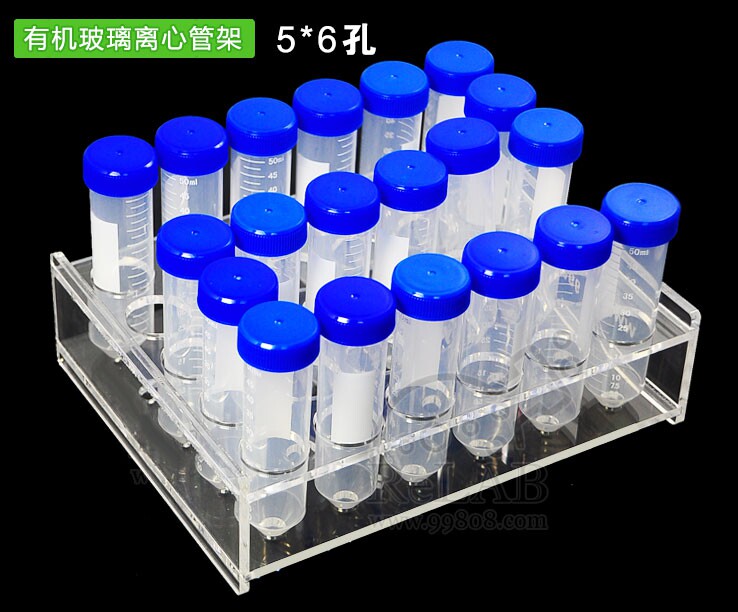 50ml 有机玻璃离心管架 29*30孔,有机玻璃板材厚度:5mm抛光处理