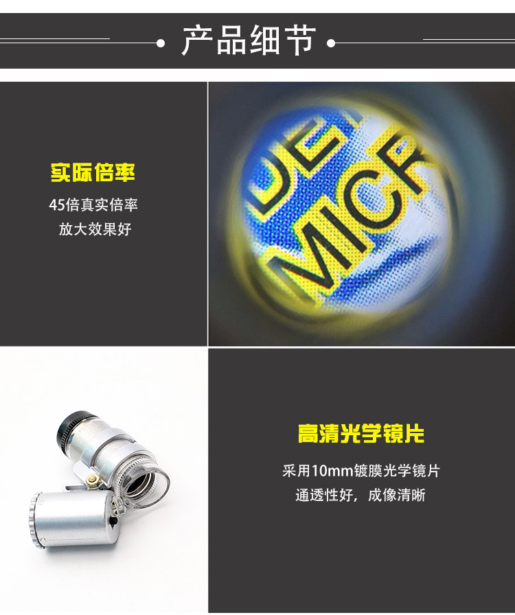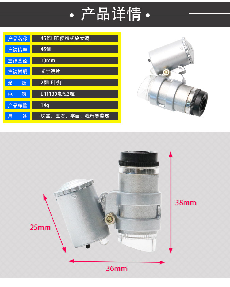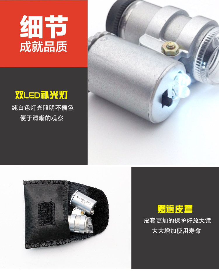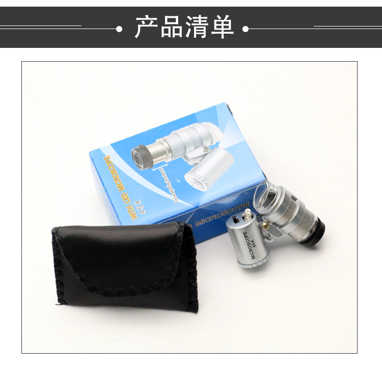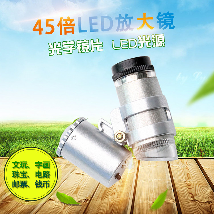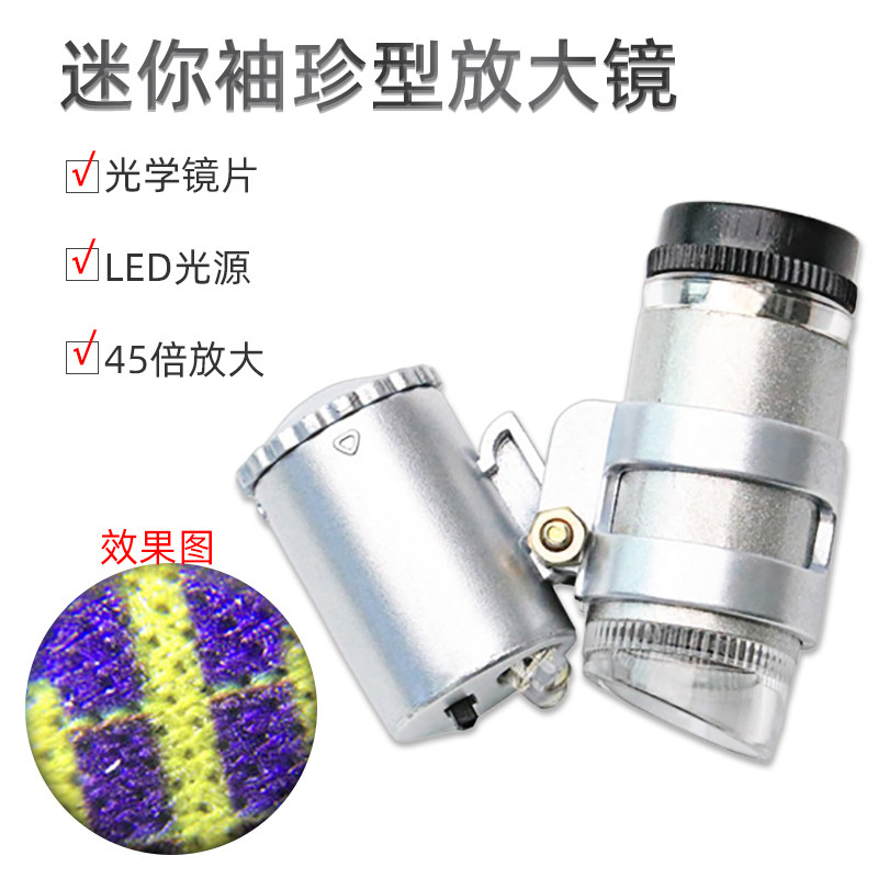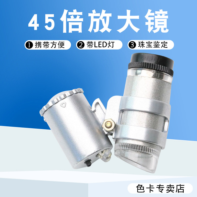 沪镜手持式 LED迷你袖珍型45倍便携式带皮套显微镜翡翠珠宝放大镜