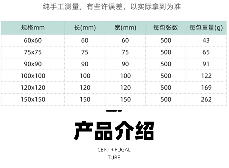 称量纸 正方形 60 75 90 100 120 150mm 500张/包 硫酸纸