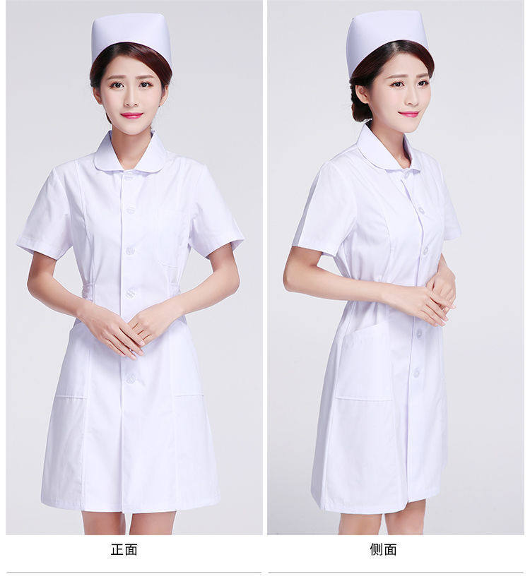 护士服半袖女夏季薄款短袖粉色白大褂娃娃领圆领大尺码药店工作制服