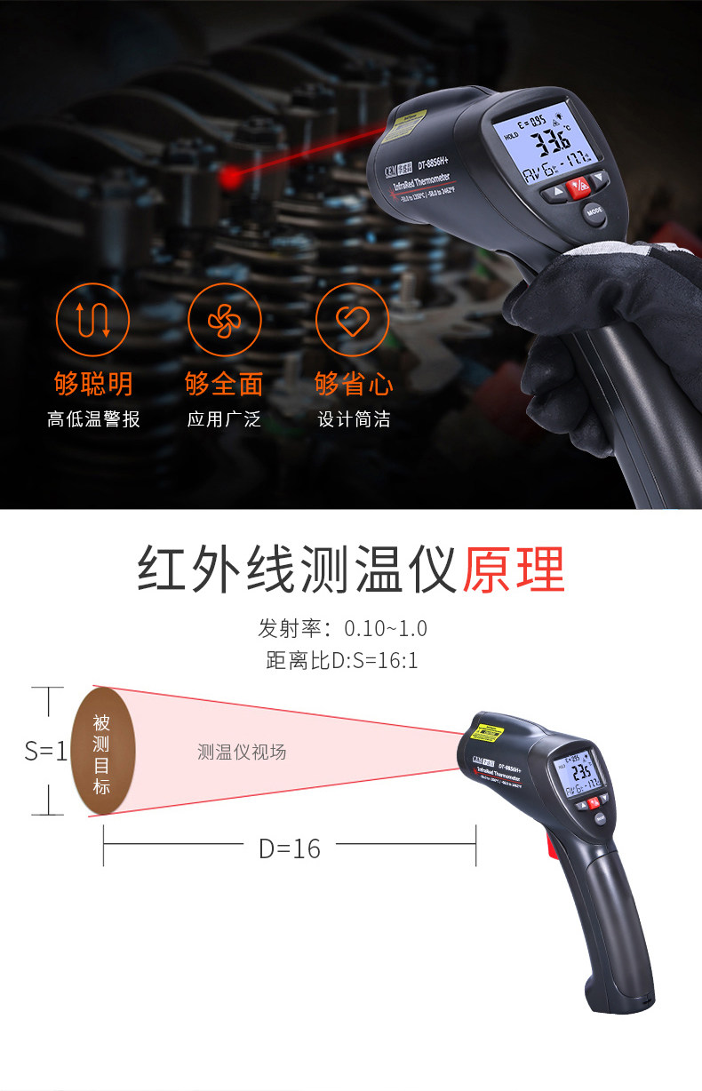 CEM华盛昌工业高温红外测温仪非接触测温枪电子测温仪DT-8857H+