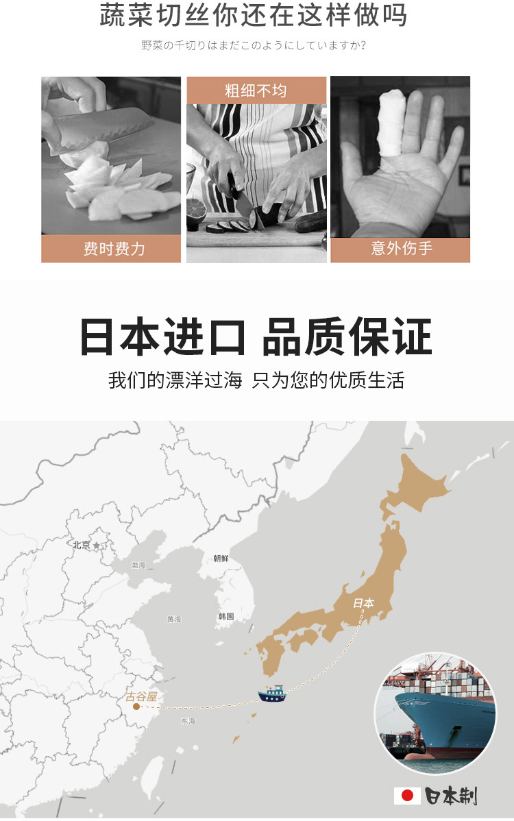 日本进口厨房土豆丝刨丝器 多功能蔬菜切丝器 不锈钢刨萝卜丝神器