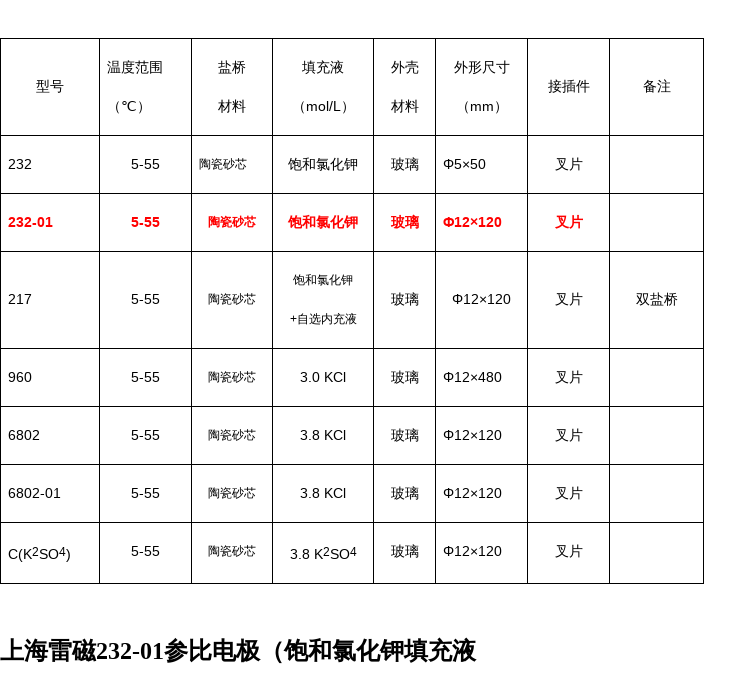 上海雷磁232-01饱和甘汞参比电极(直管饱和甘汞电极)