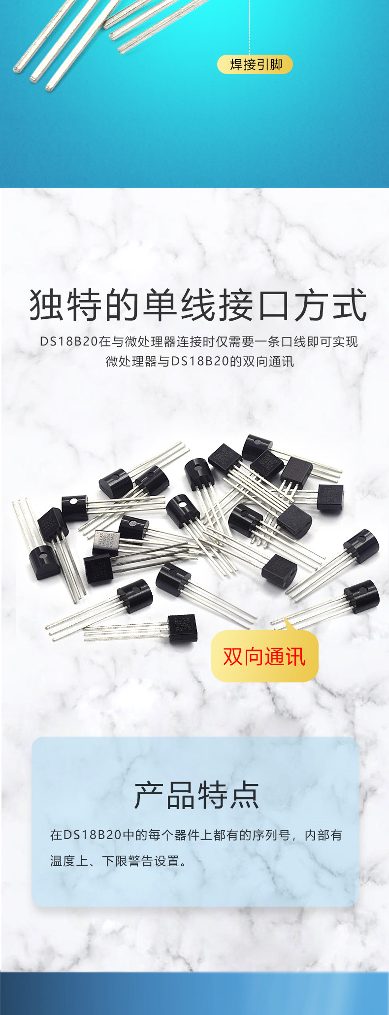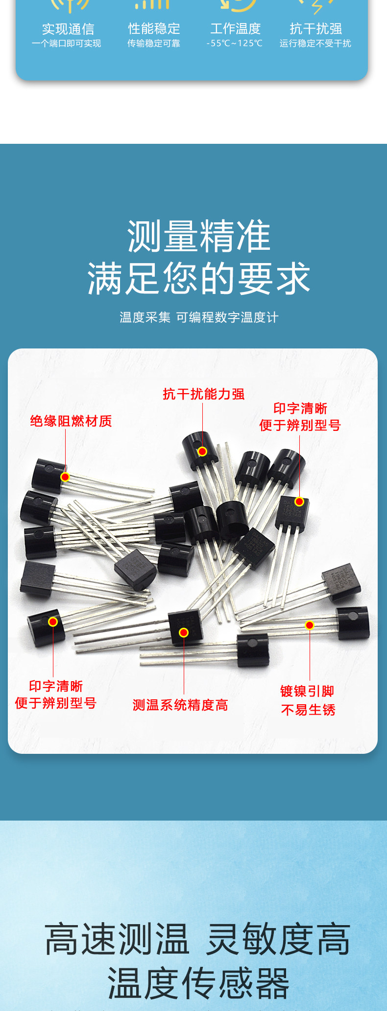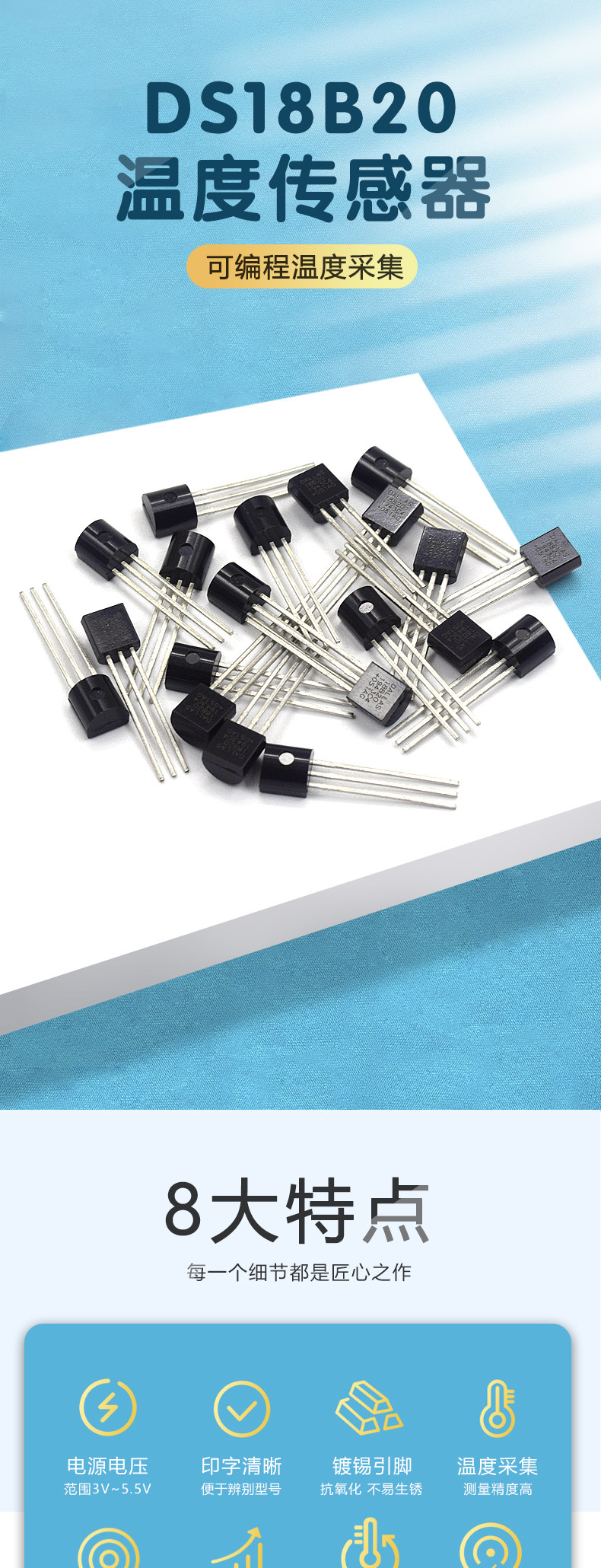 DS18B20 TO-92 温度感测器 18b20 温度采集 可程式设计数字温度计