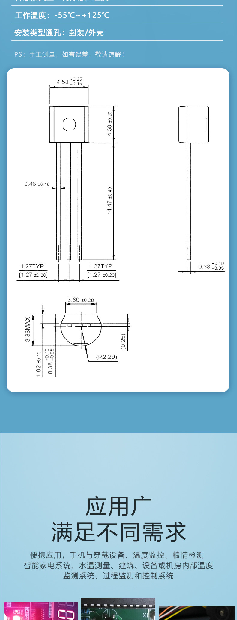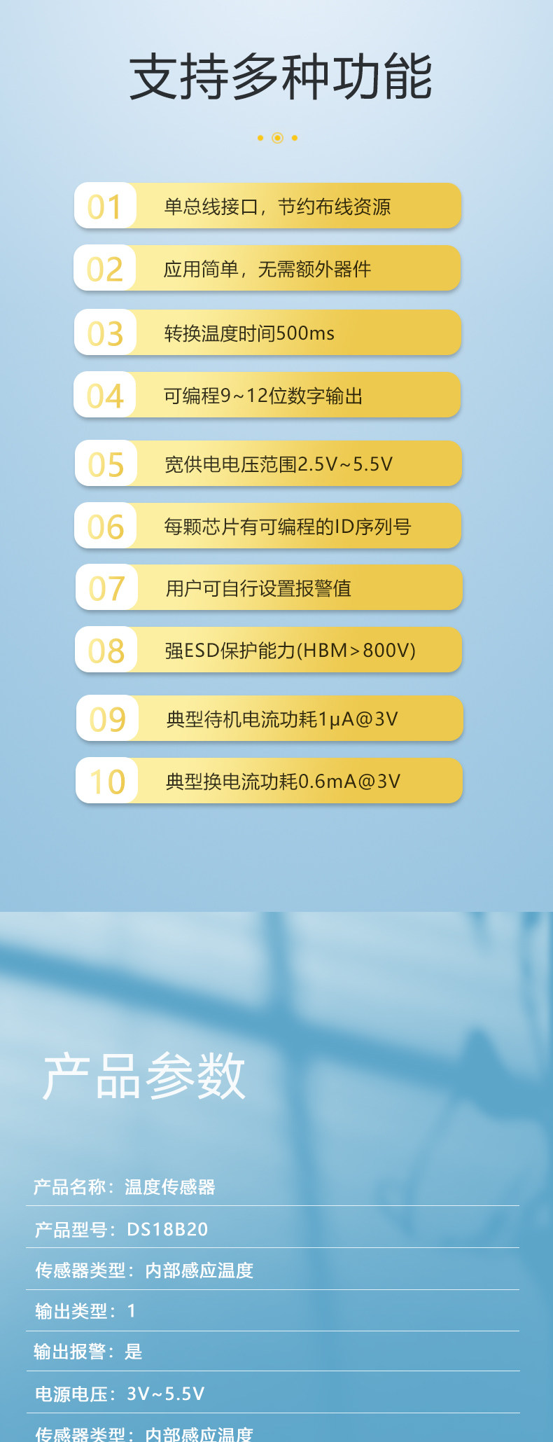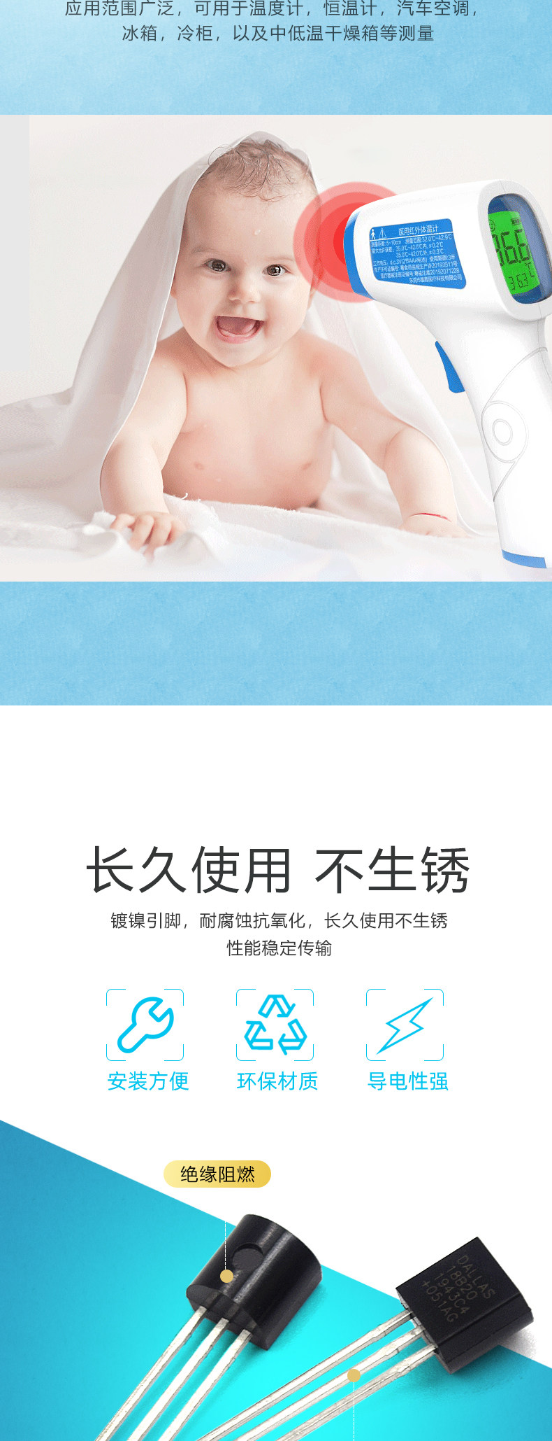 DS18B20 TO-92 温度感测器 18b20 温度采集 可程式设计数字温度计