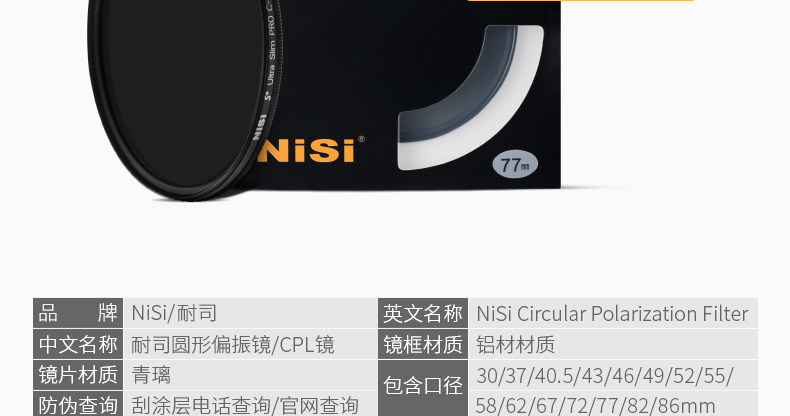 NiSi耐司 CPL 72mm 偏振镜薄框偏光滤镜 适用于适马18-35mm 尼克尔24-70mm 索尼18-105 16-35mm相机滤光镜
