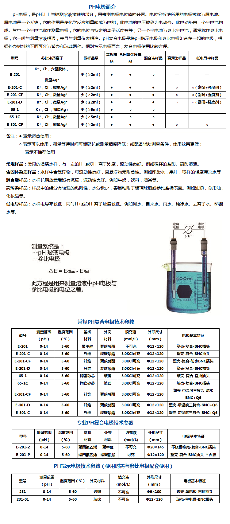 上海雷磁E-201-C可充式PH复合电极 E-301-F E-201F 65-1C玻璃电极