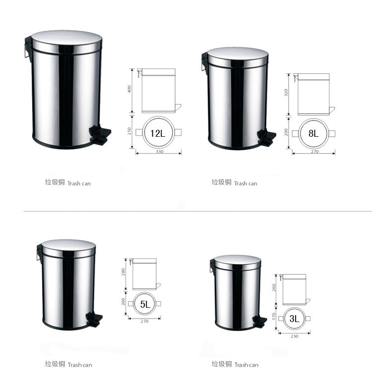Anmon时尚脚踏 不锈钢 家用 创意 翻盖垃圾桶8L