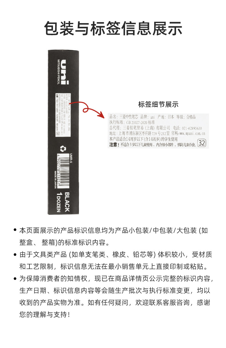 日本uni三菱铅笔UMR-5中性笔笔芯 水笔替芯0.5mm 适合三菱UM-100用