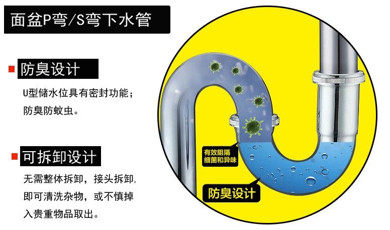 下水器排水管全铜S弯防臭下水管台盆面盆地排盛水P弯洗手盆配件
