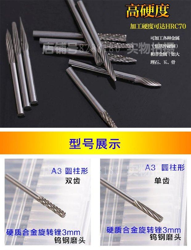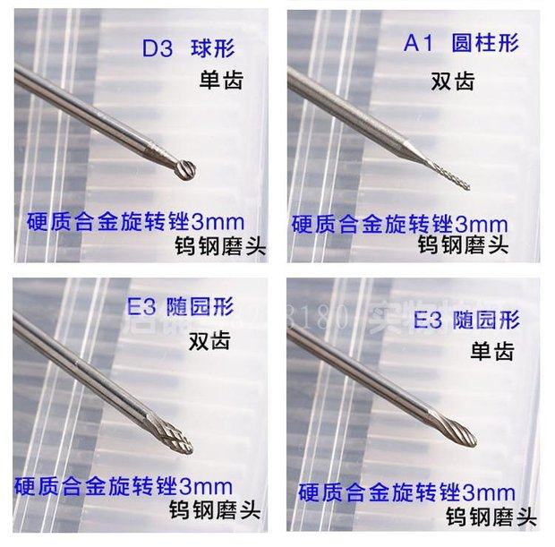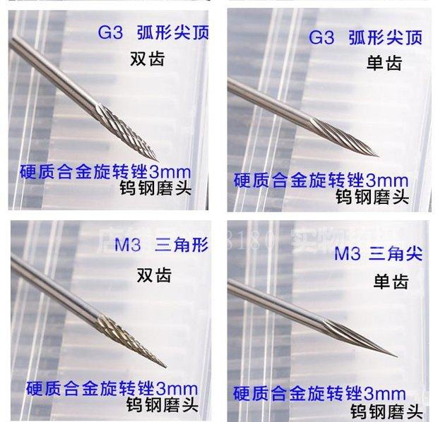 钨钢磨头3mm硬质合金旋转锉组钨钢铣刀磨头木工雕刻刀金属磨削