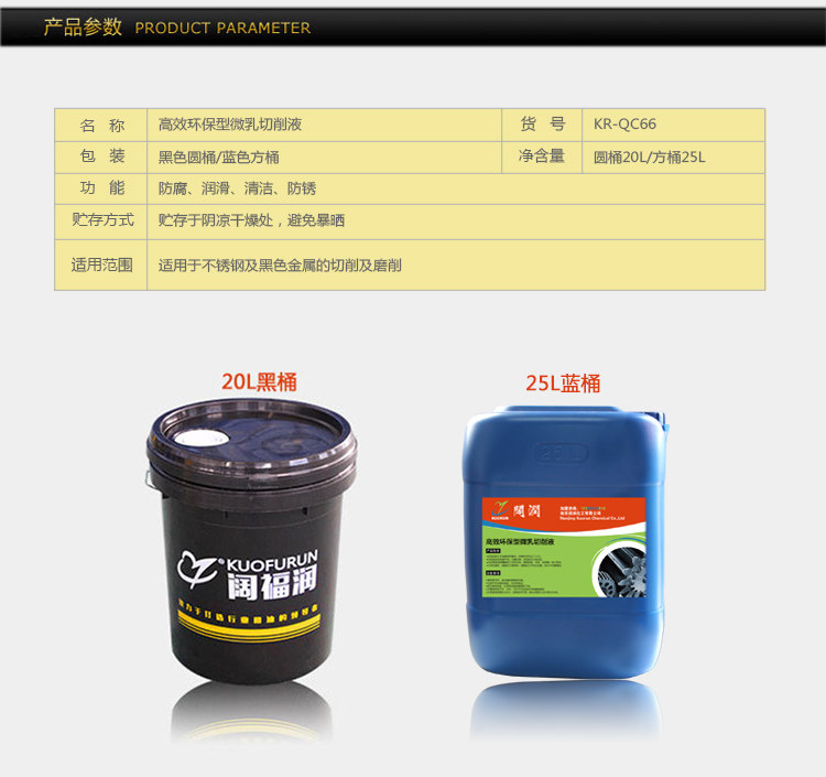 阔润KR-QC66 微乳切削液 环保高效型 润滑冷却佳 防锈好