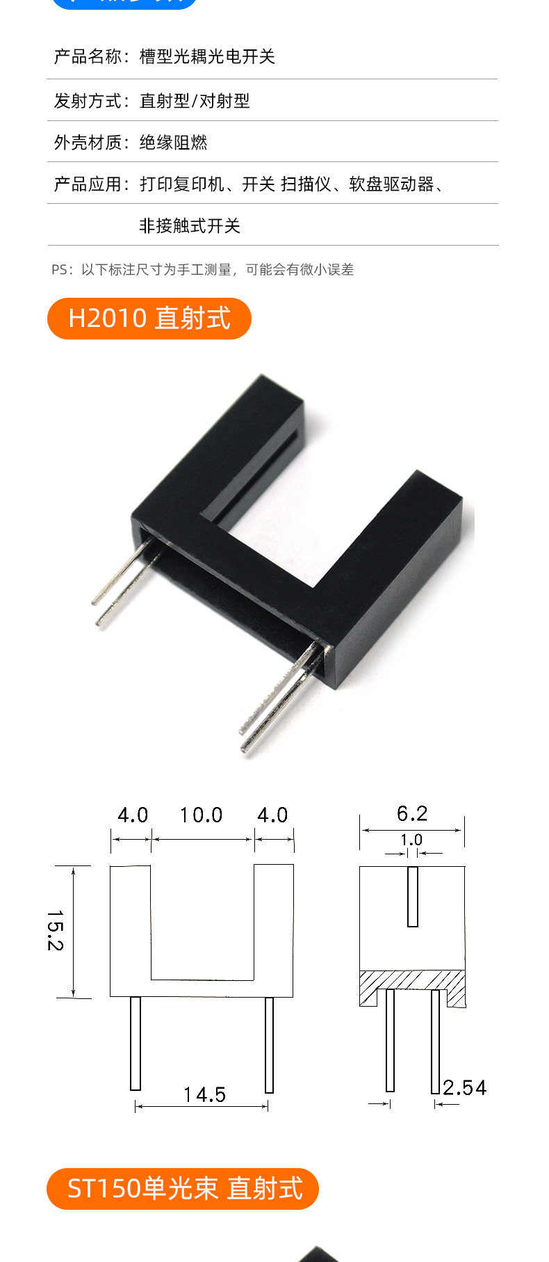 直射对射式光电传感器槽型光耦光电开关H2010 ST150 ST130A GK105