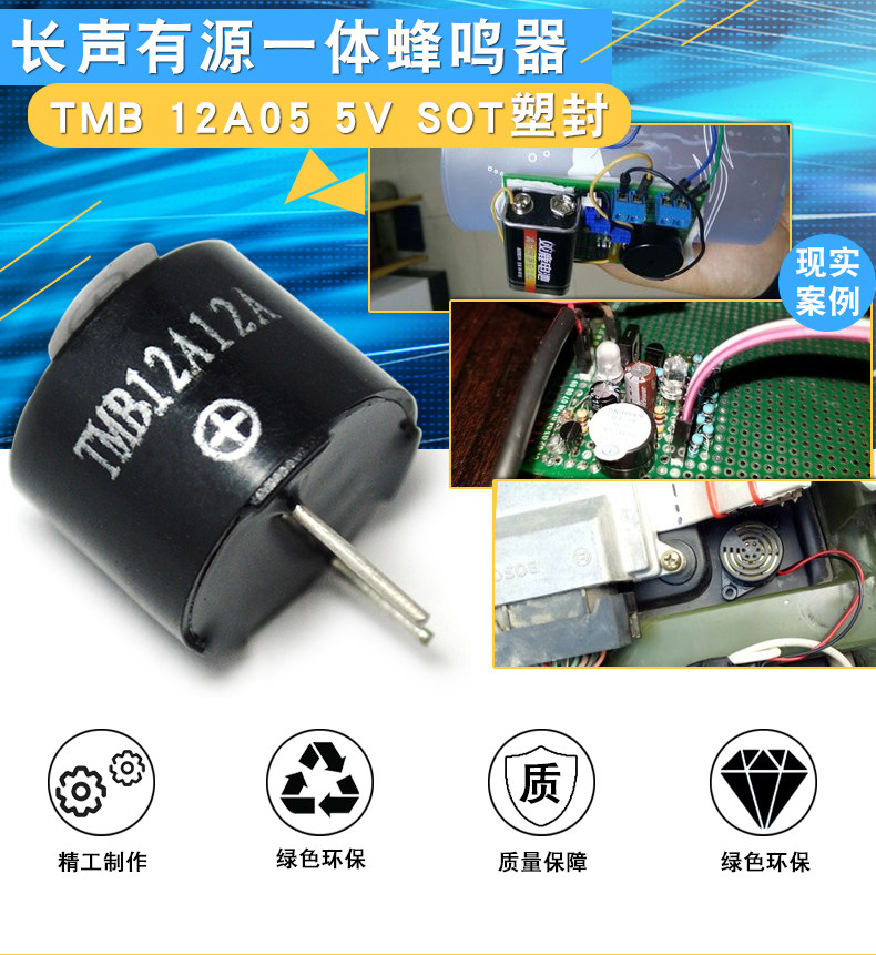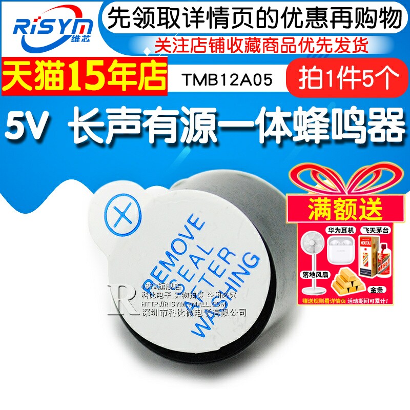 Risym长声有源一体蜂鸣器 TMB12A05 5V 长声发声蜂鸣器 SOT塑