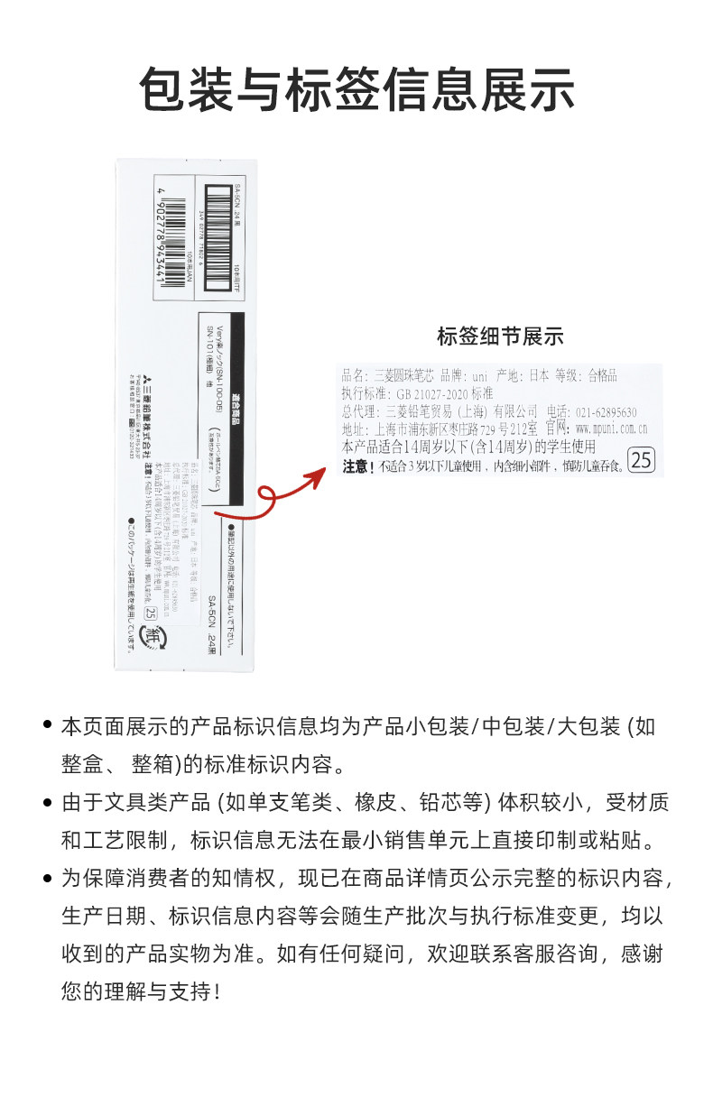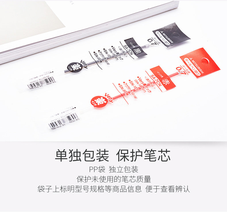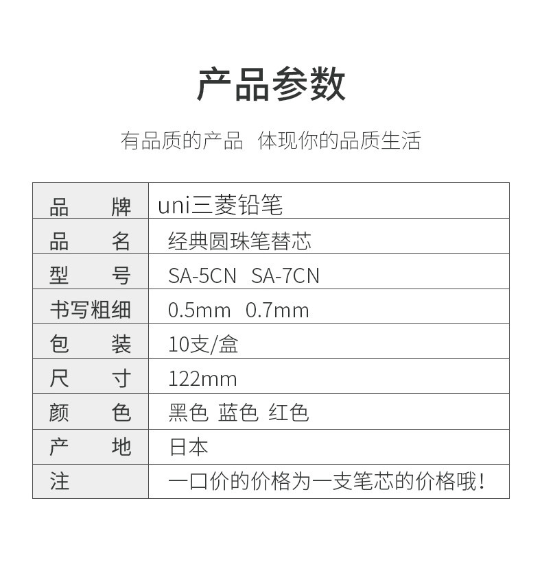 三菱0.7mm原子笔芯UNI红色SA-5CN 适用SN-100原子笔芯 黑蓝双色笔芯
