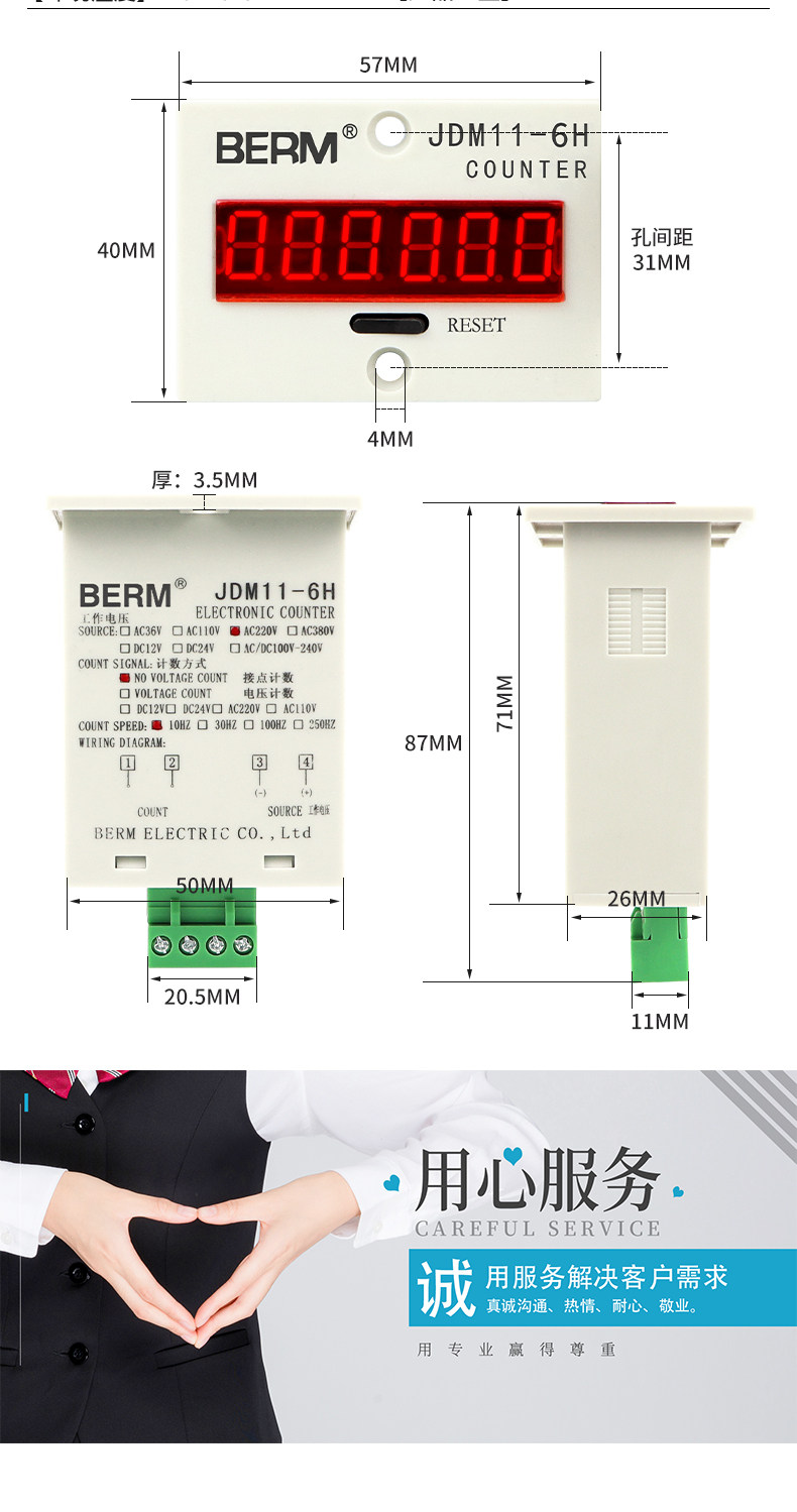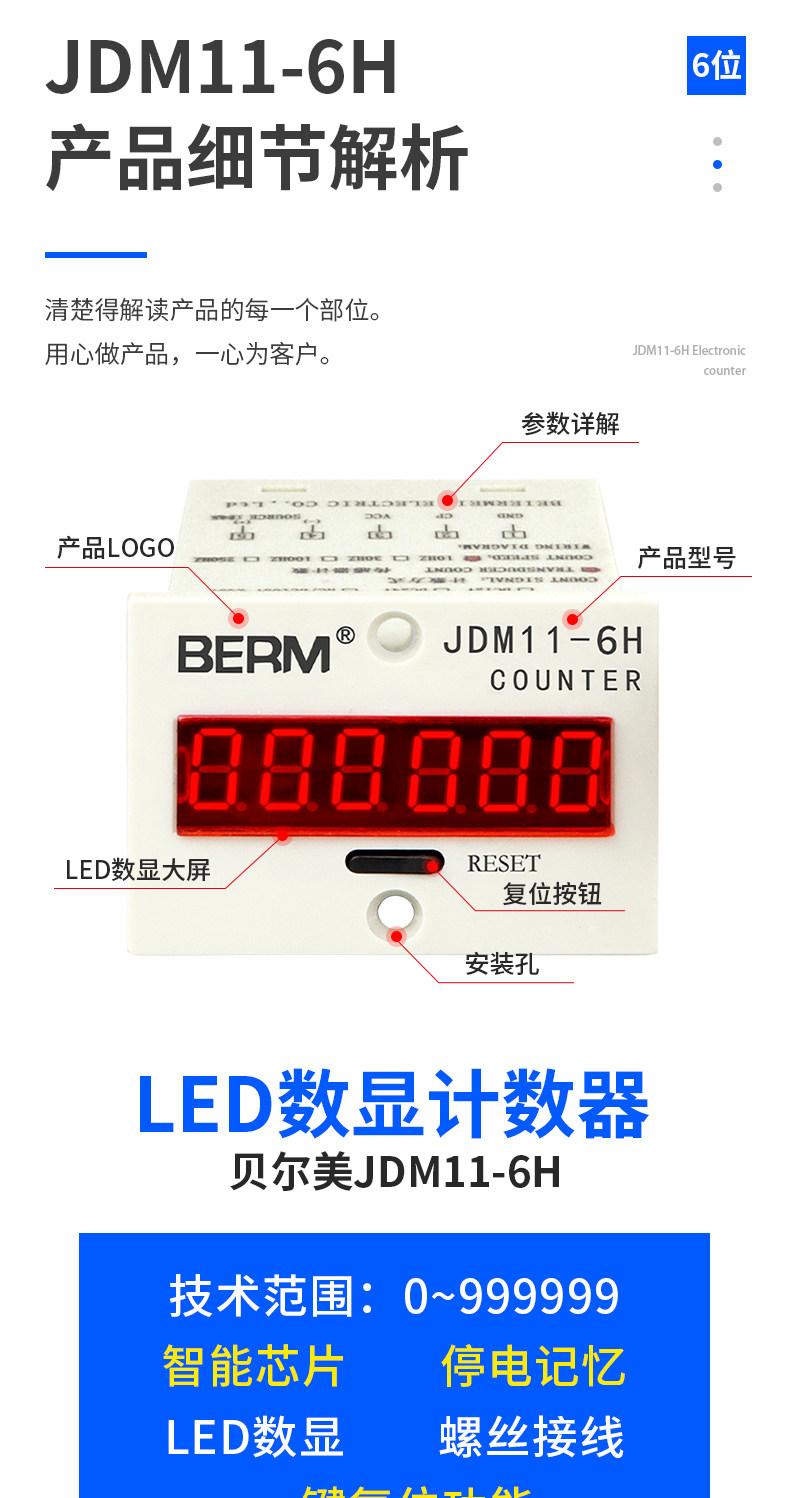 JDM11-6H 高精度电子数显计数器 带停电记忆功能 可累加计数 AC220V 深圳制造