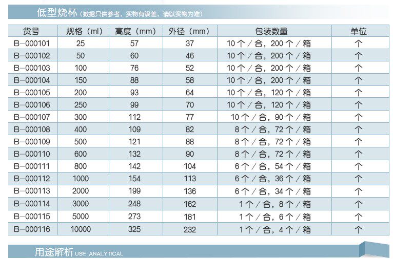 蜀牛玻璃低型烧杯25 50 100 150 250 300 500 800 1000ml耐高温