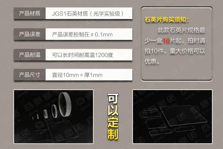 光亮高科/耐高温石英圆片 光学玻璃视镜 定制 10mm×1mm(现货)