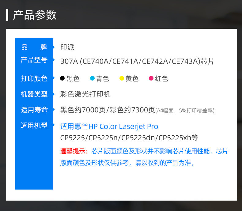 适用惠普 HP5225芯片 CE740A 743A CP5225n 742A佳能9100硒鼓芯片