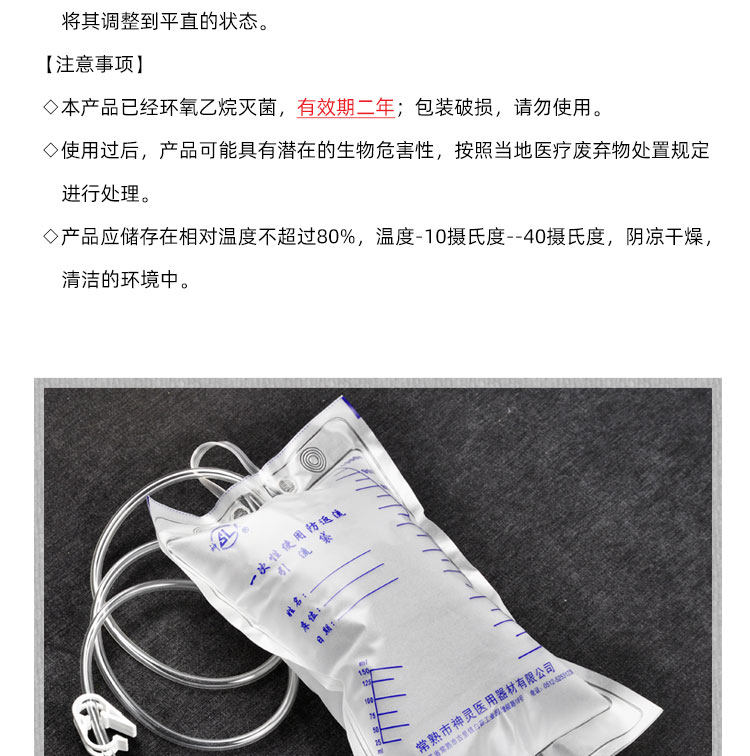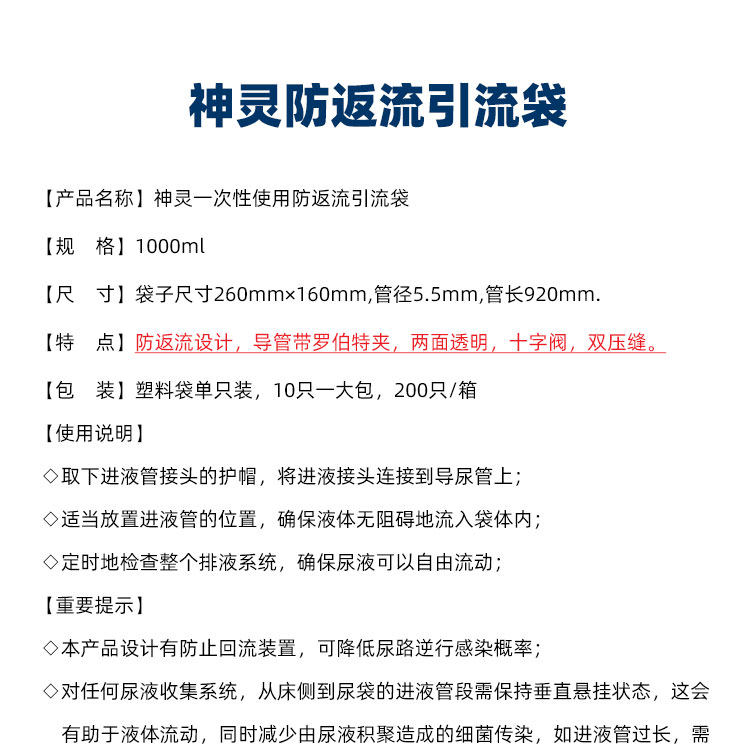 神灵牌一次性使用引流袋1000ML防返流集尿袋接尿器螺旋纹腹腔胆汁