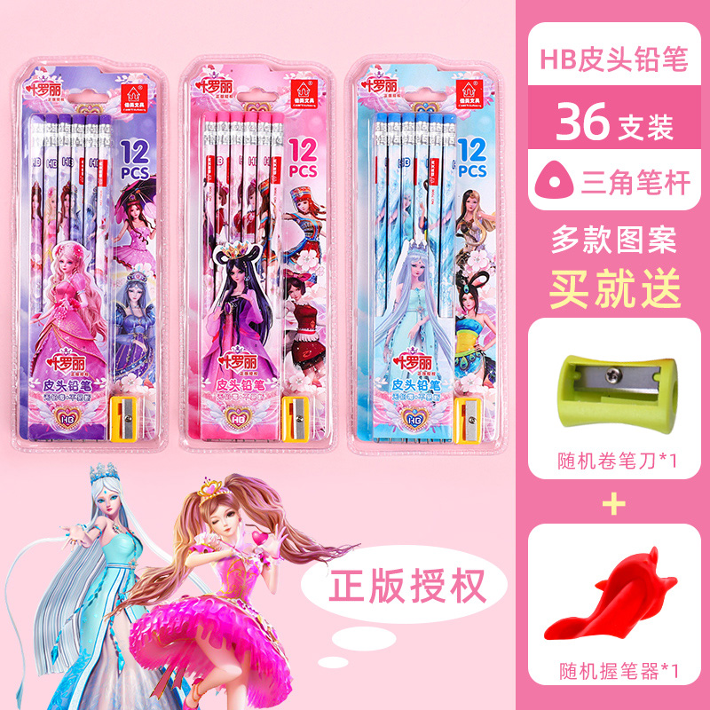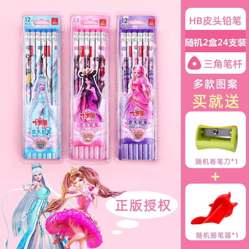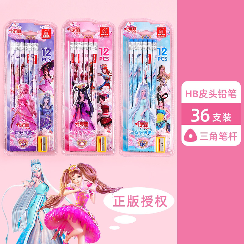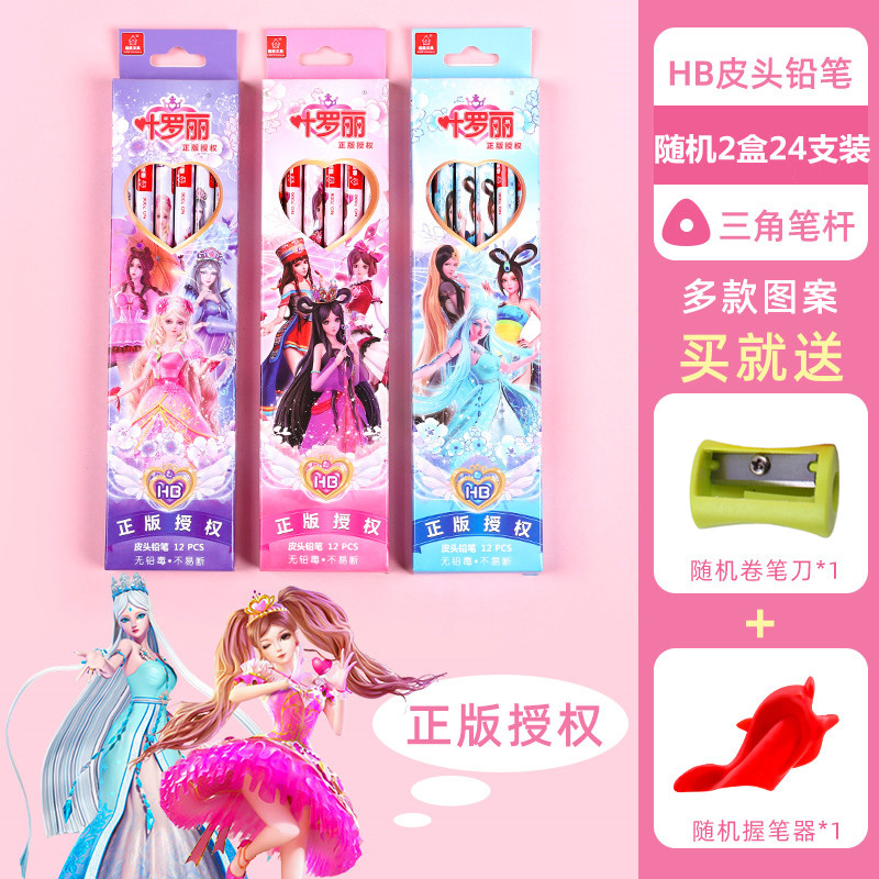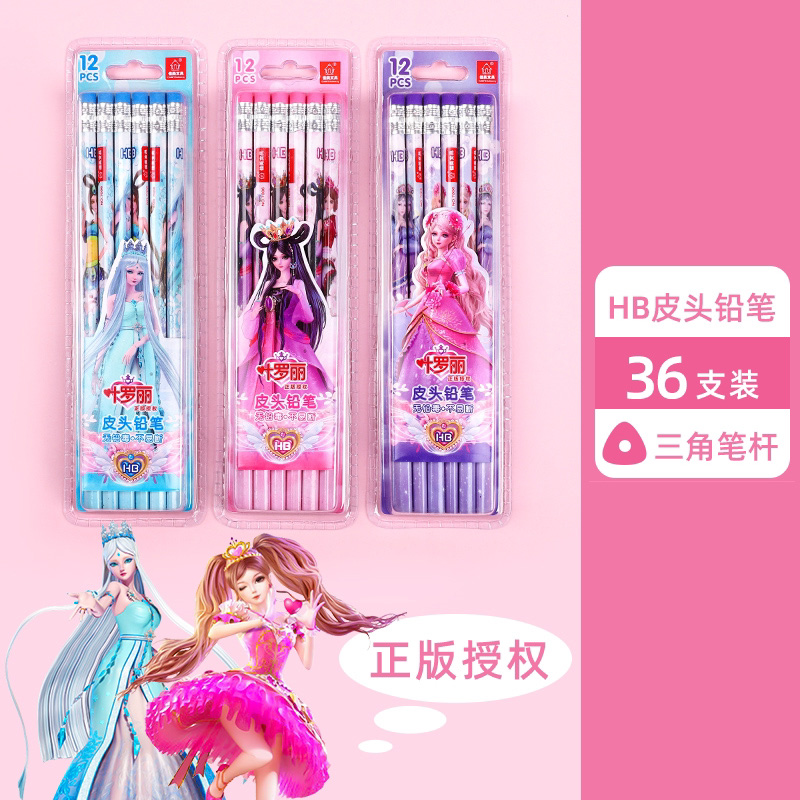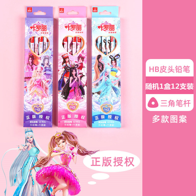 正版叶罗丽皮头铅笔三角杆圆杆带橡皮小学生用可爱女生文具HB卡通