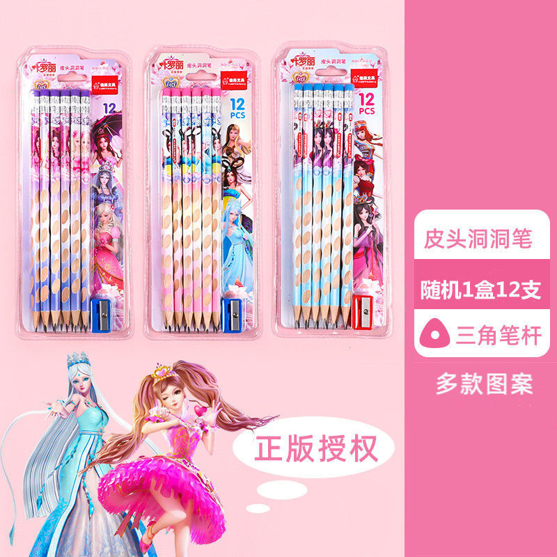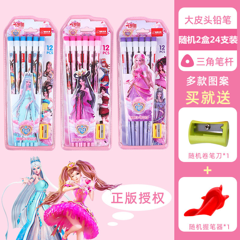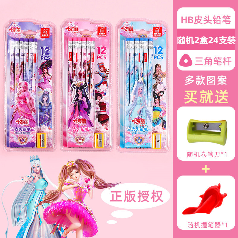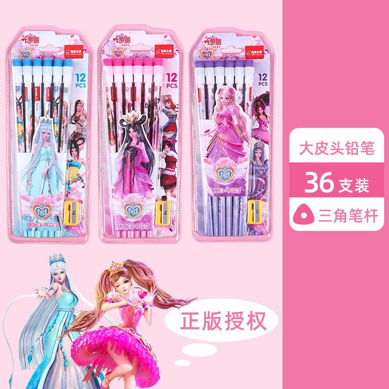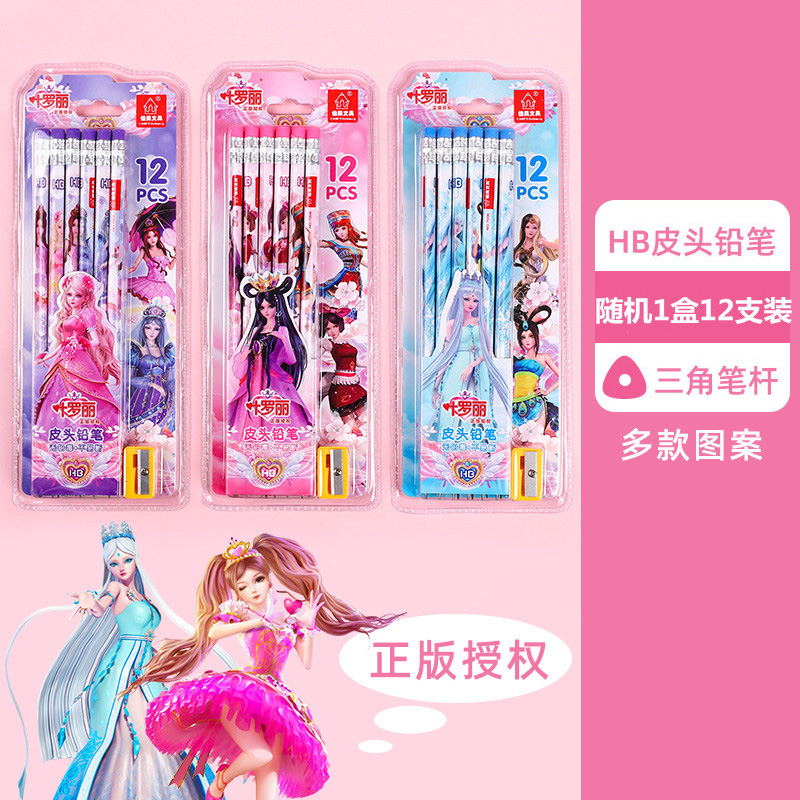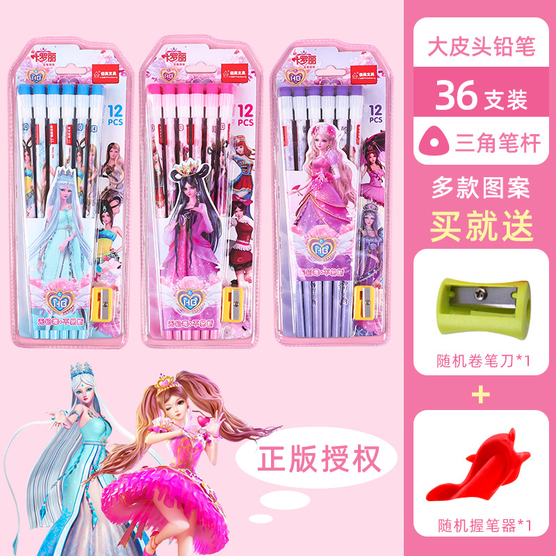 正版叶罗丽皮头铅笔三角杆圆杆带橡皮小学生用可爱女生文具HB卡通