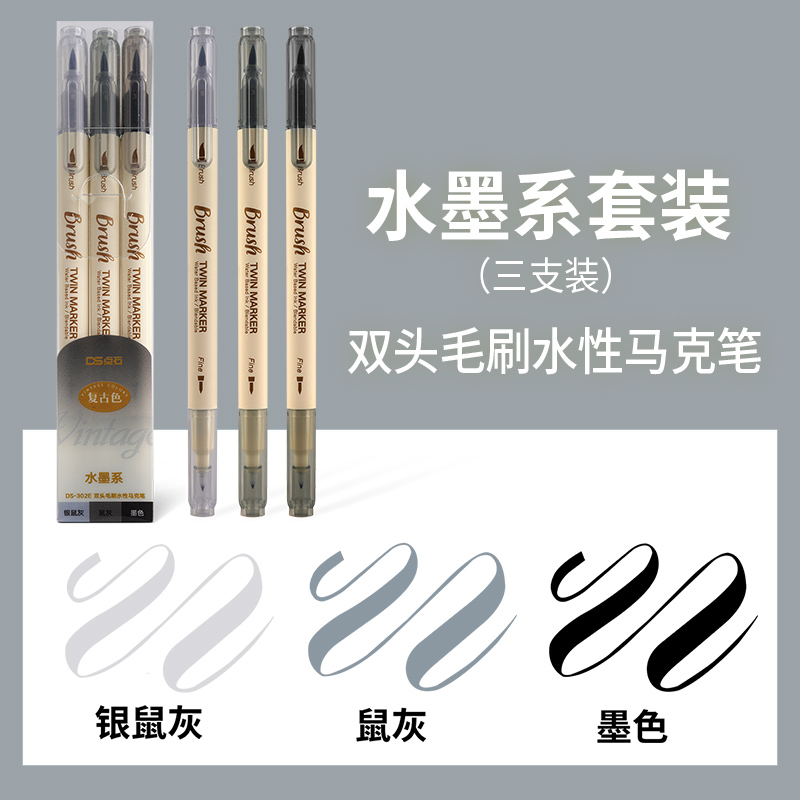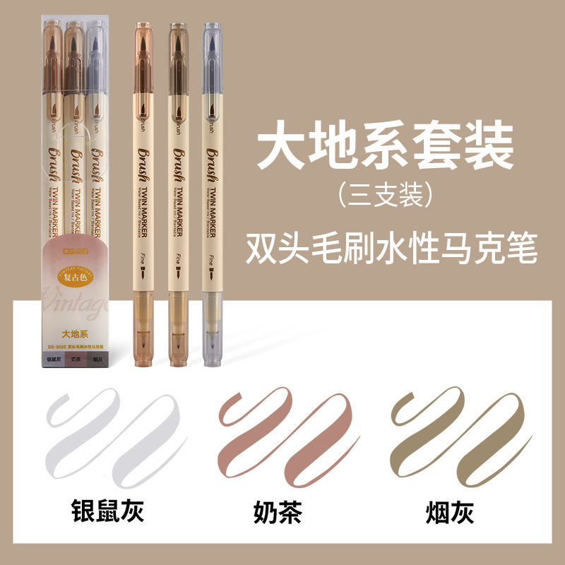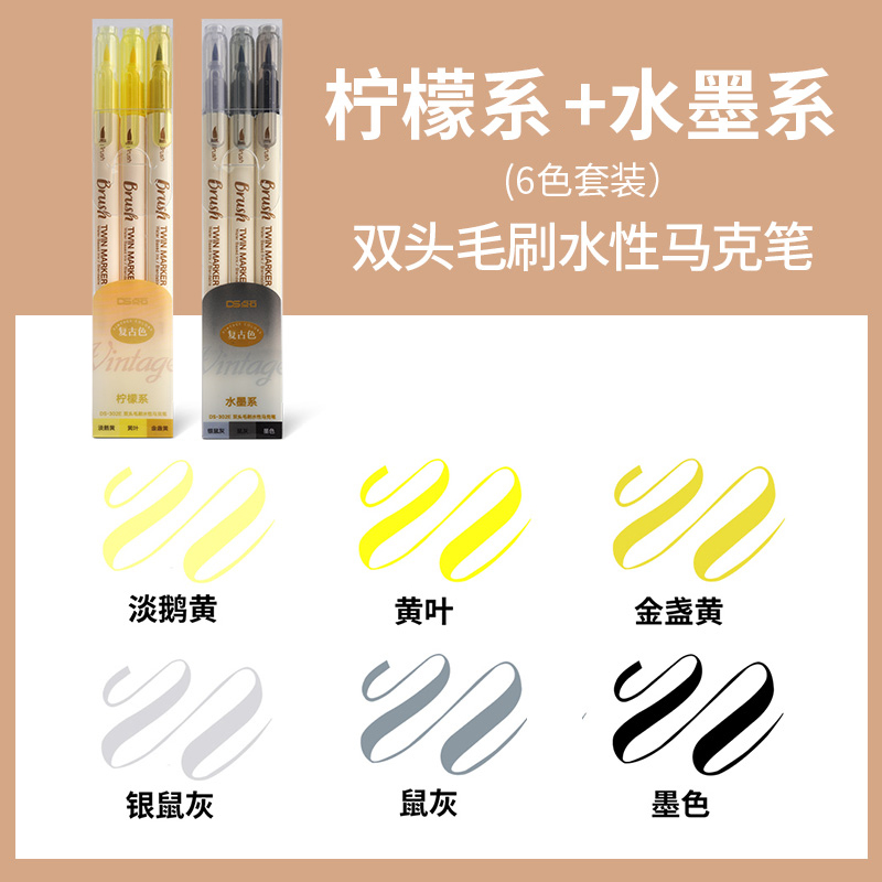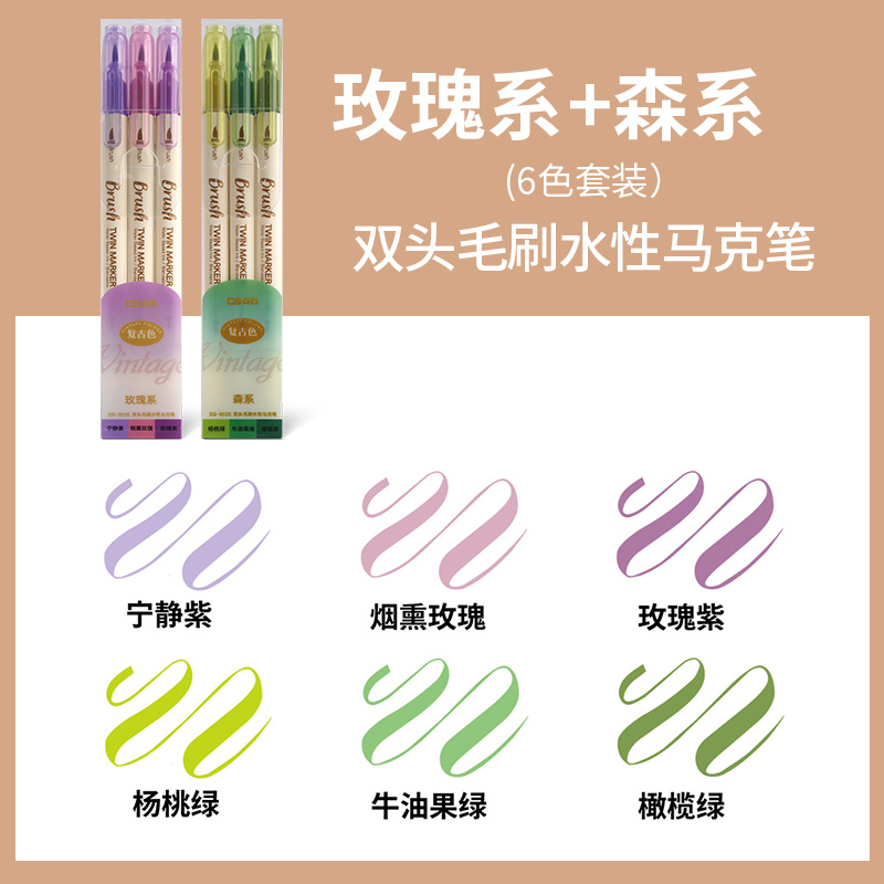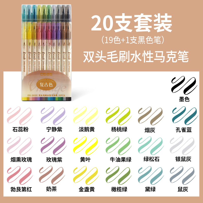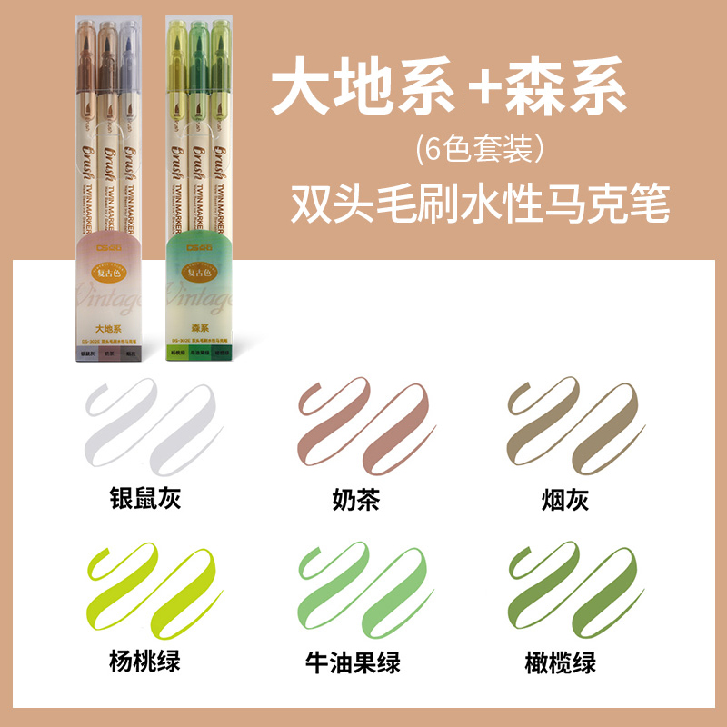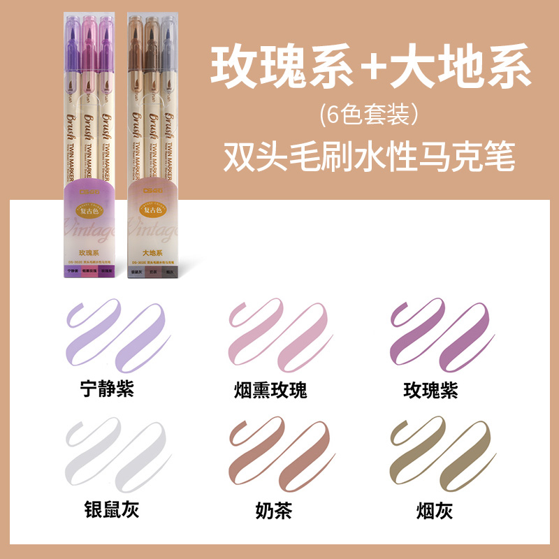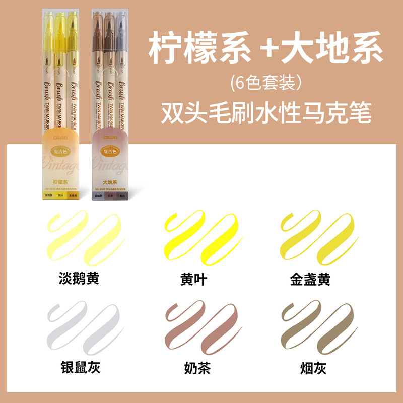 点石brush双头马克笔手帐专用笔复古色手账荧光套装软头绘画学生