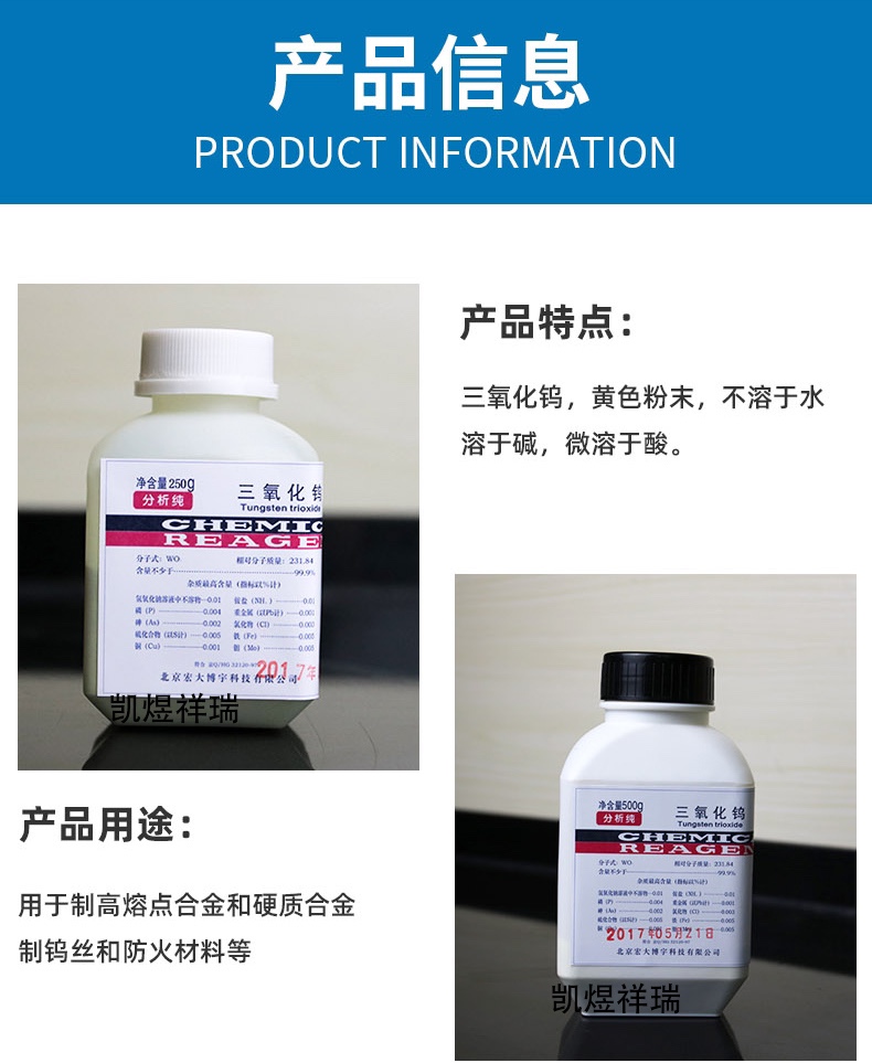 测硫仪专用三氧化钨含量99%煤定三氧化物250克500克 AR三氧化钨