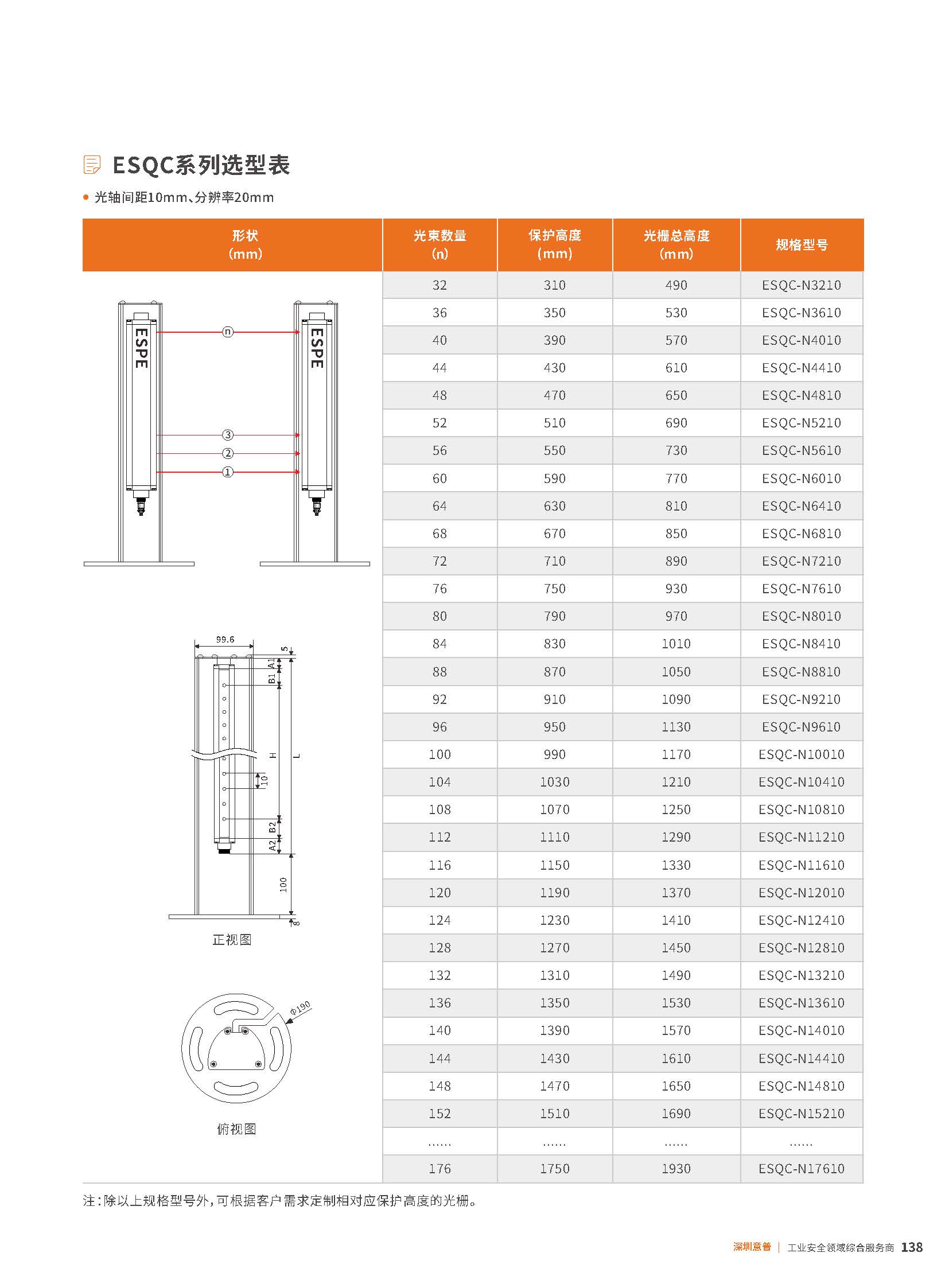 ESPE意普ESQC系列多面防护光栅光幕安全光栅光幕传感器自动化光栅