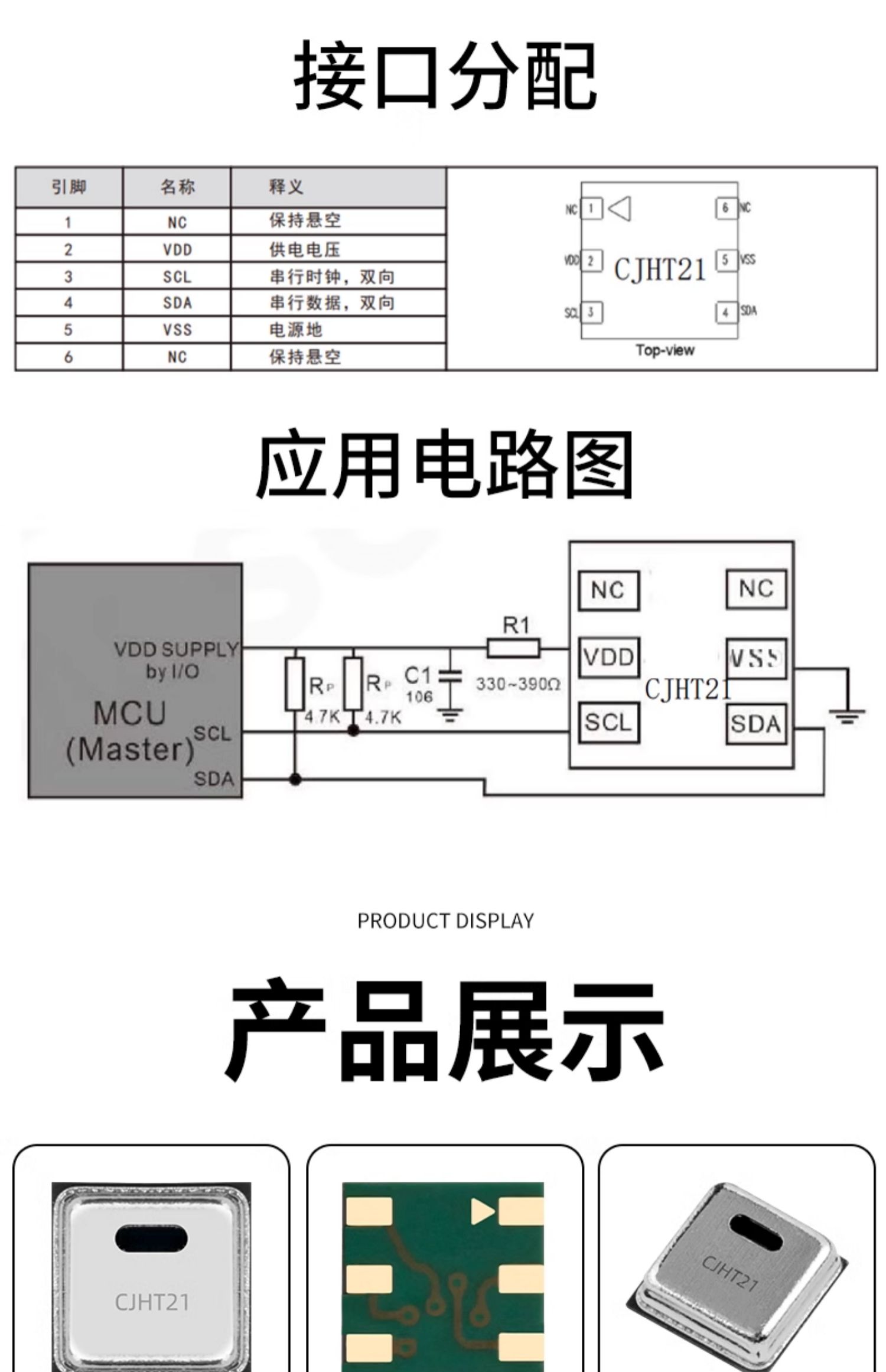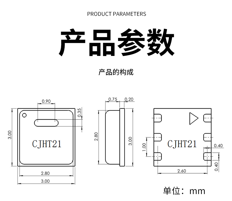 传苣CJHT21温湿度传感器MEMS芯片高精度贴片式IIC通讯协议一致性