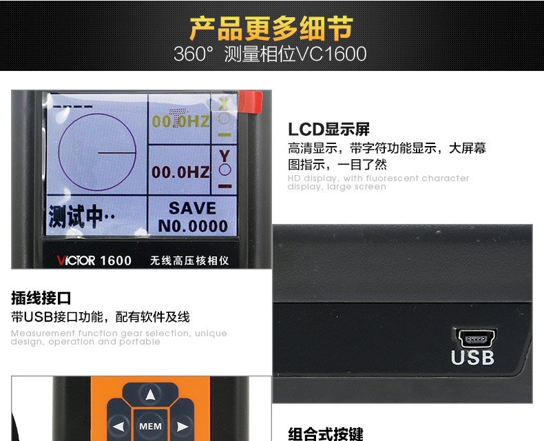 胜利无线高压核相仪VC1600验电器测试核相器三相相序检测仪