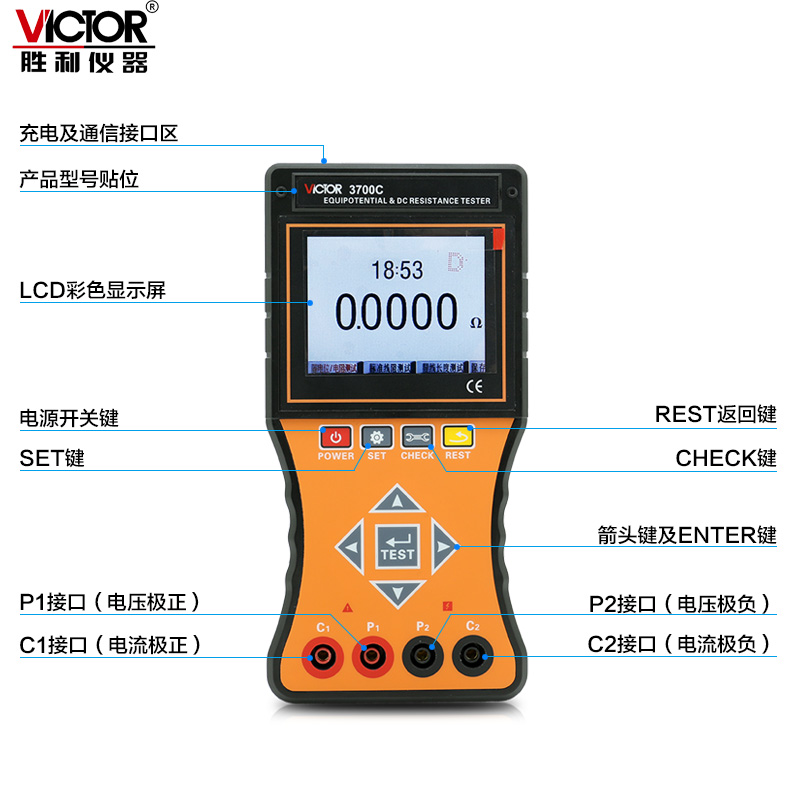 胜利智能型等电位测试仪VC3700C/3800C直流低电阻欧姆表微电阻计