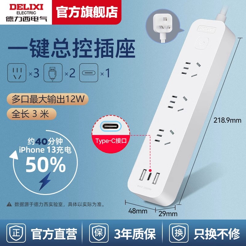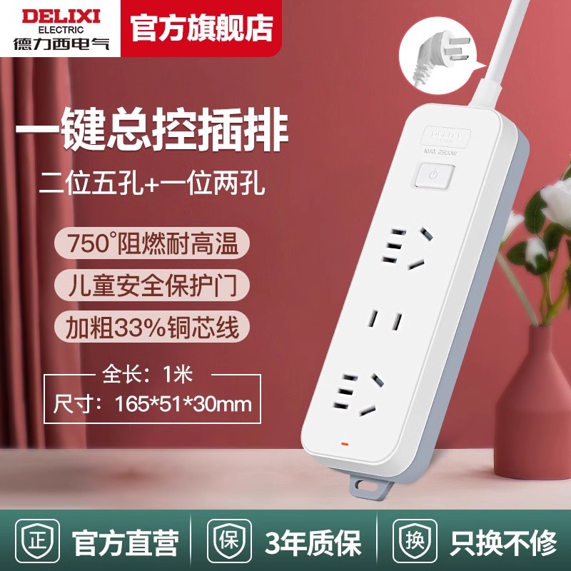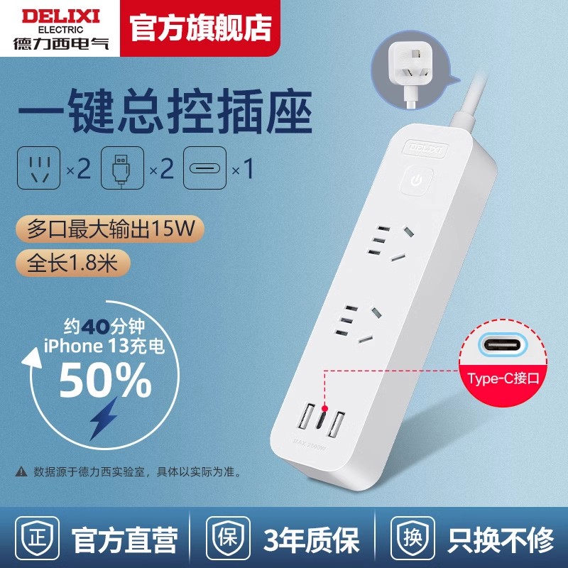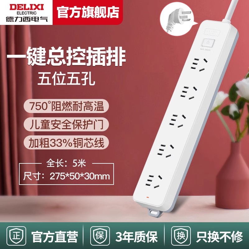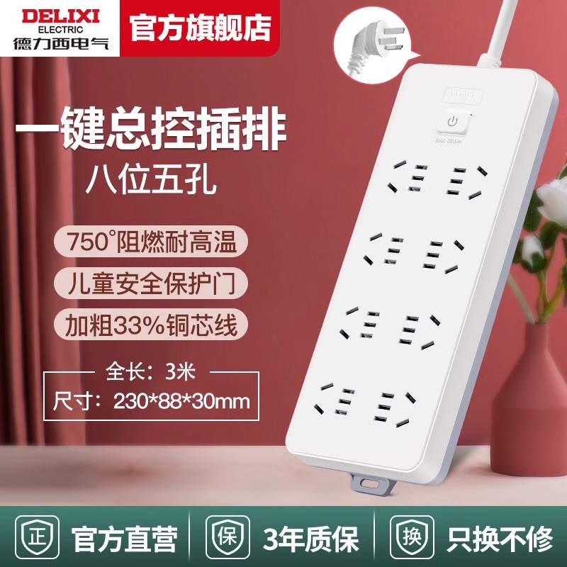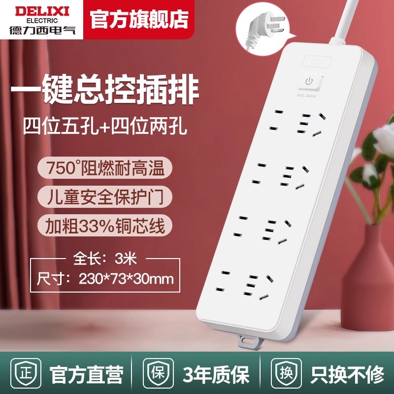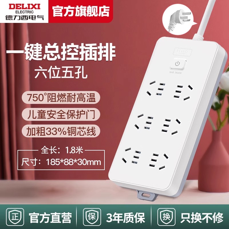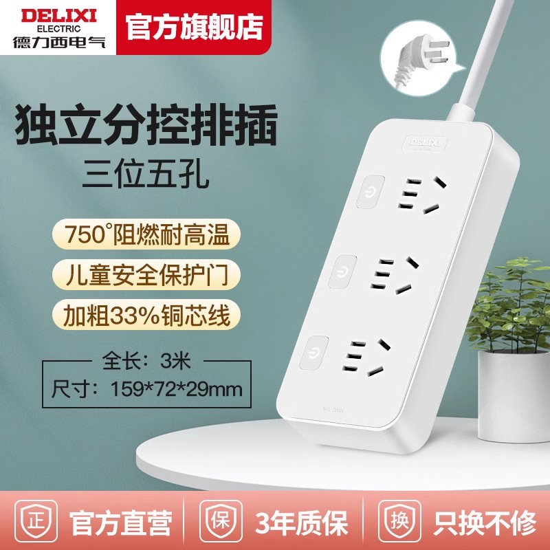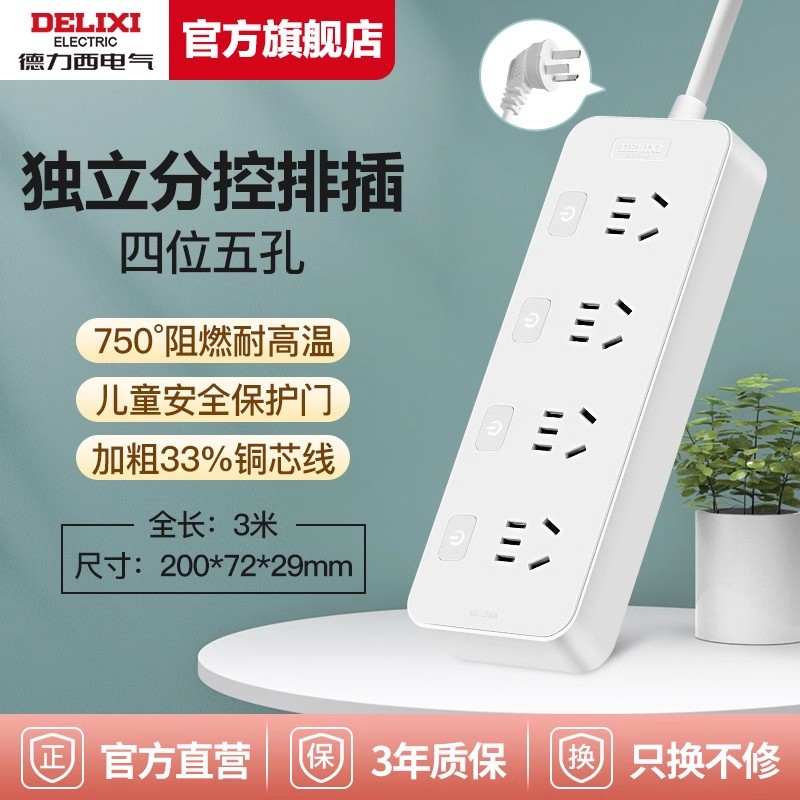 德力西插座排插分控独立开关排插多功能插板多孔插线板拖线板家用