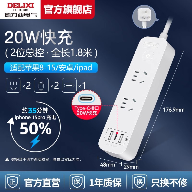 【20W快充】2插位+2USB+1C口-1.8米 登录可见 登录可见 9999 606750643804