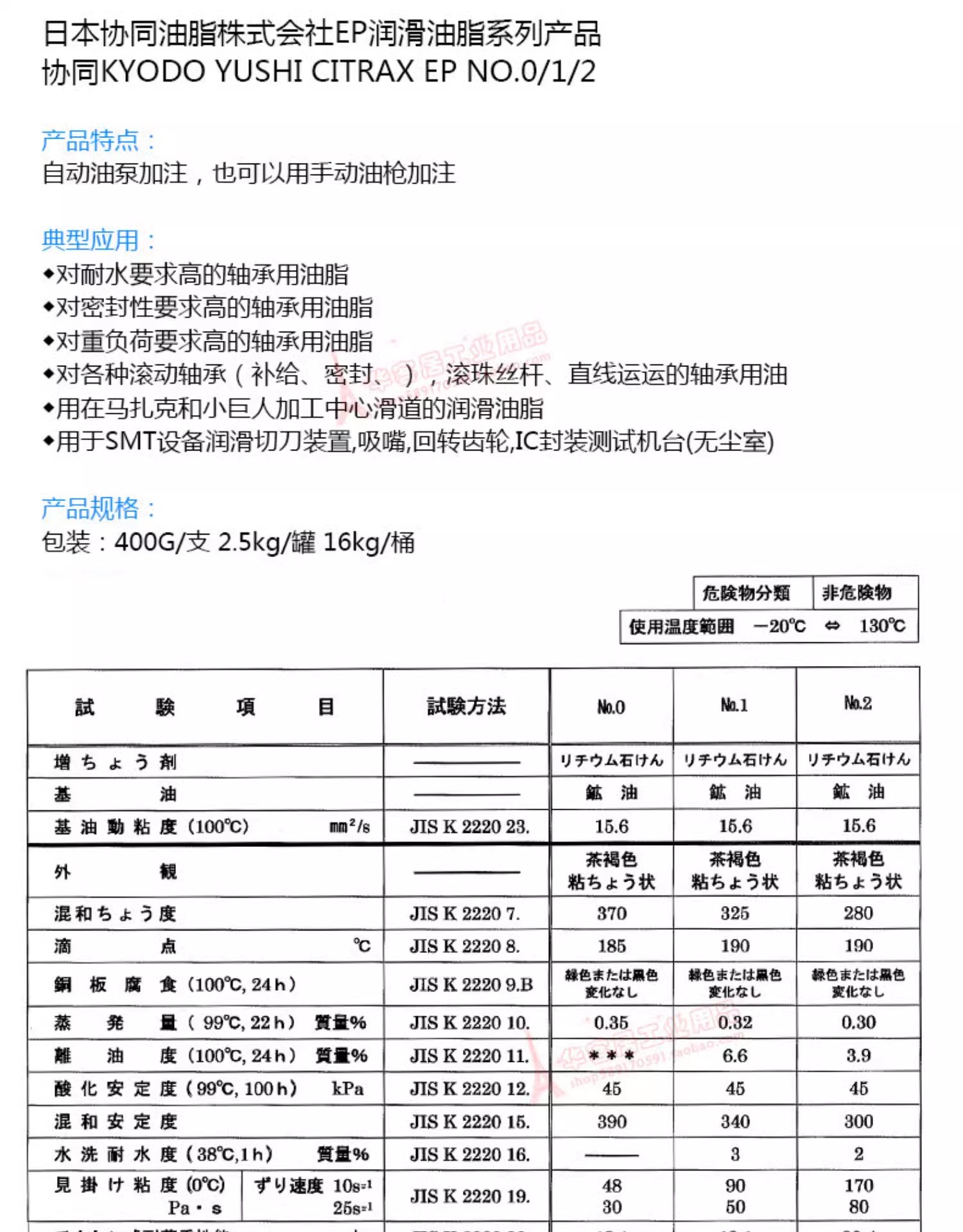 日本协同EP NO.1/NO.2黄油0号马扎克加工中心导轨保养专用润滑脂