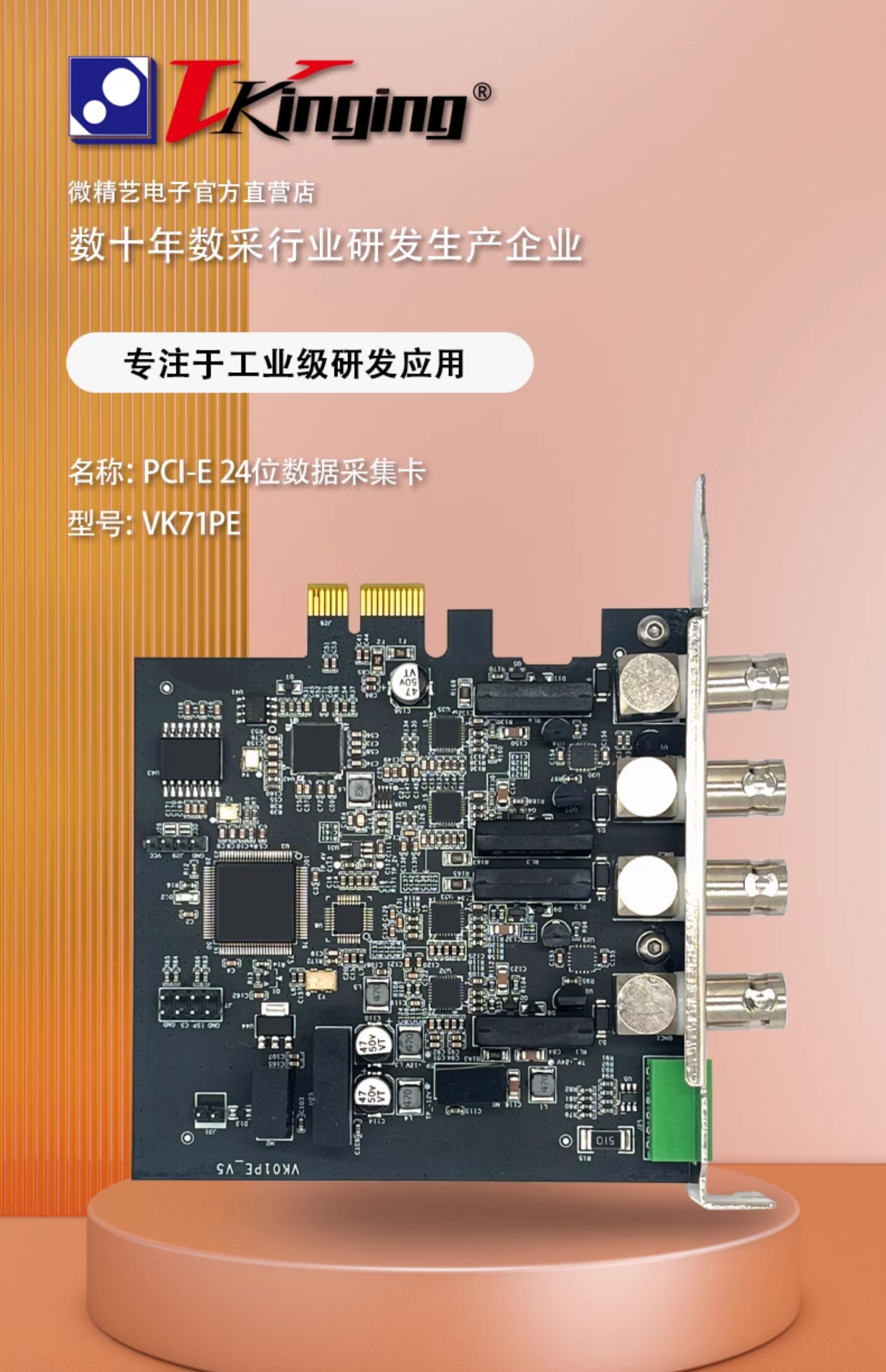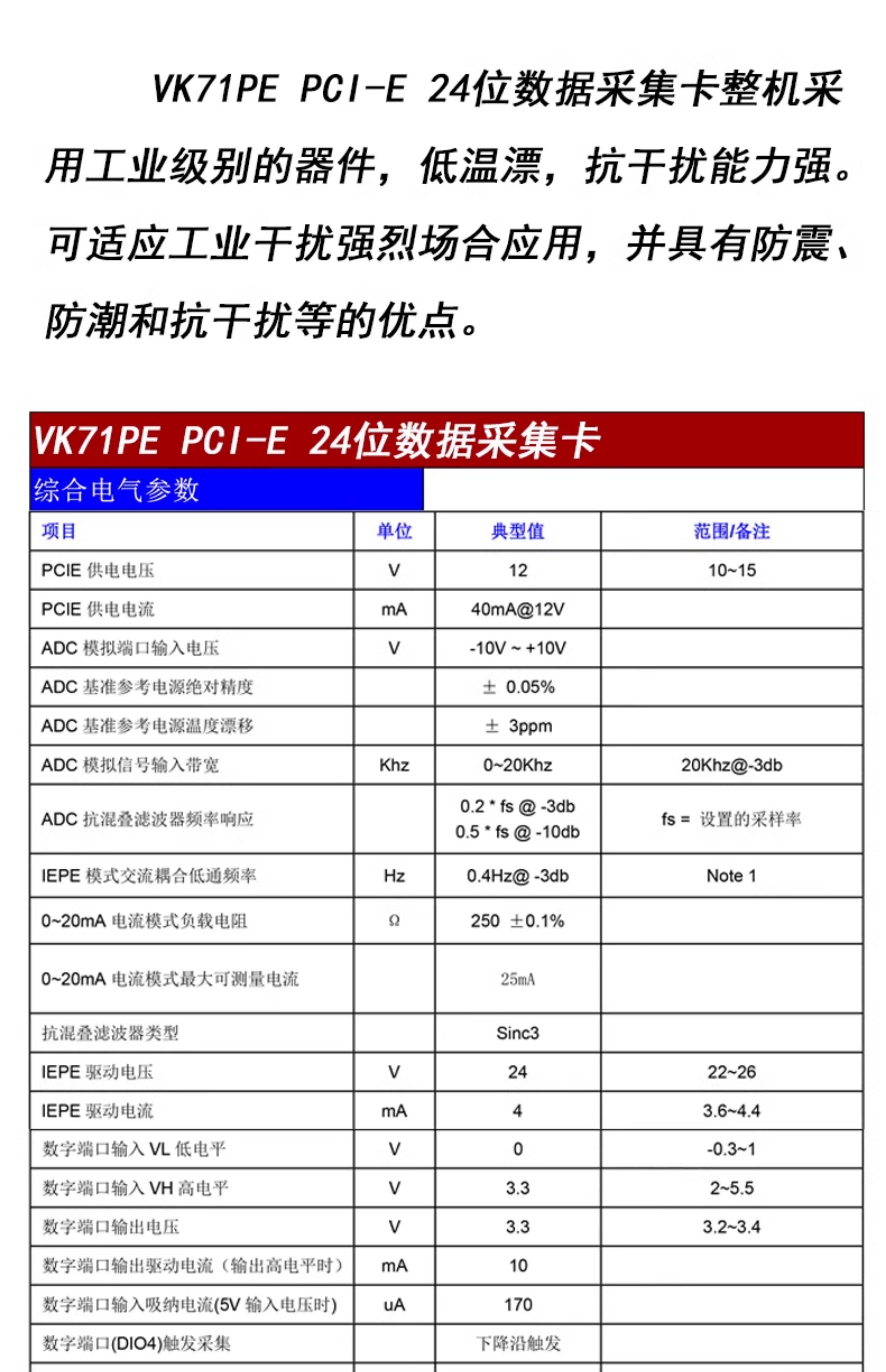 VK71PE 24位PCIE数据采集卡隔离型102.4K采样支持ADC/IEPE/0-20mA