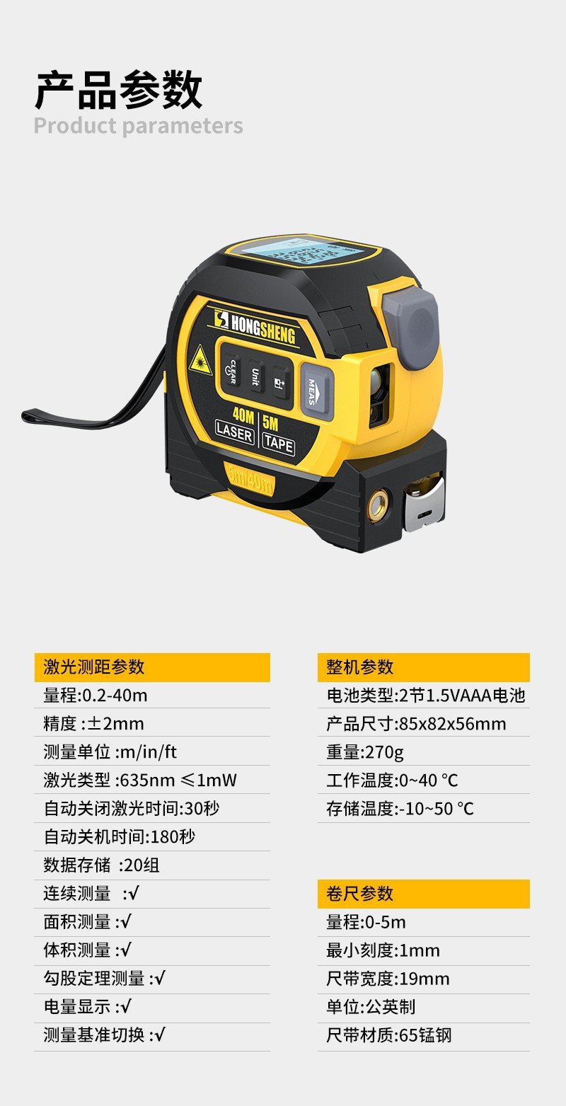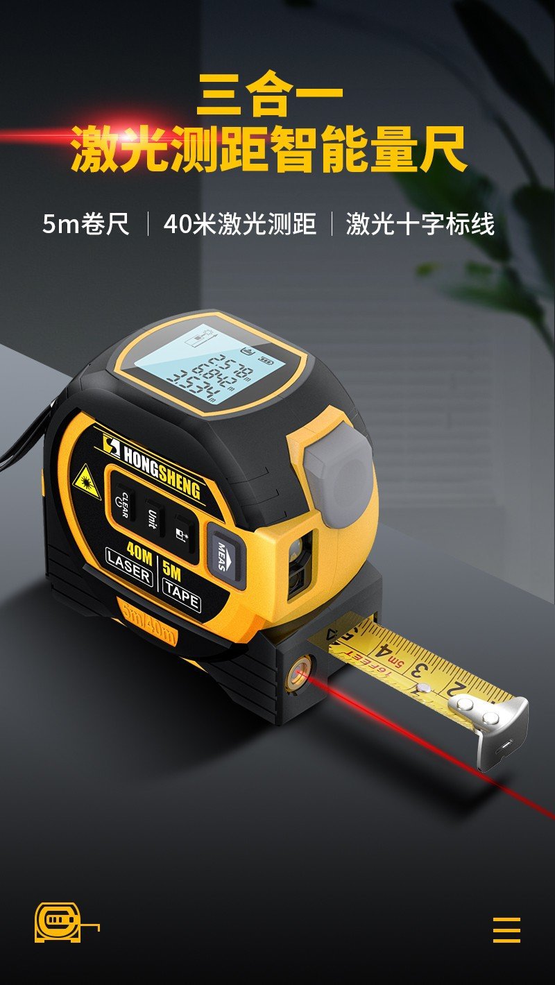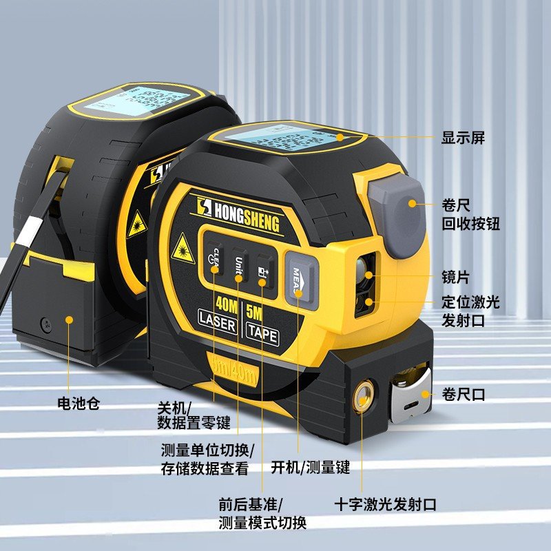 激光卷尺 三合一红外线测距仪高精度电子测量 钢卷尺量房神器